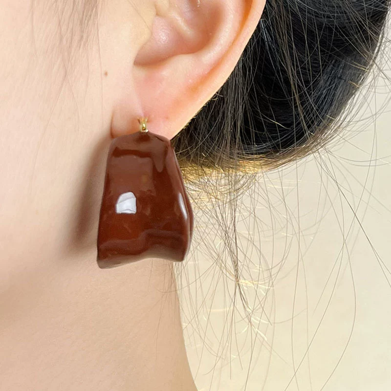 2023 autumn and winter new retro Maillard chocolate color enamel dripping glaze circle earrings light luxury high-end earrings