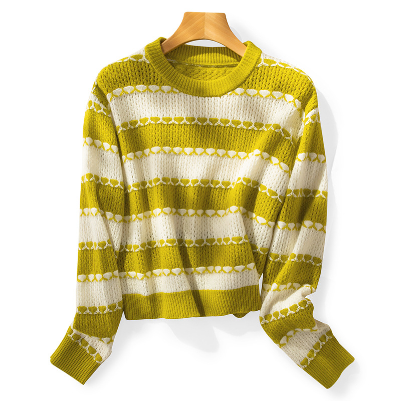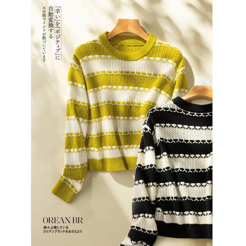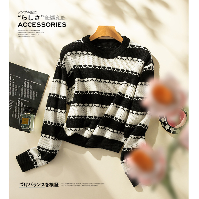 | nameOriginal | 2023 autumn and winter New round neck hollow contrast color sheep sweater soft lazy style casual loose knitted sweater for women |