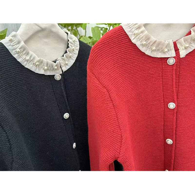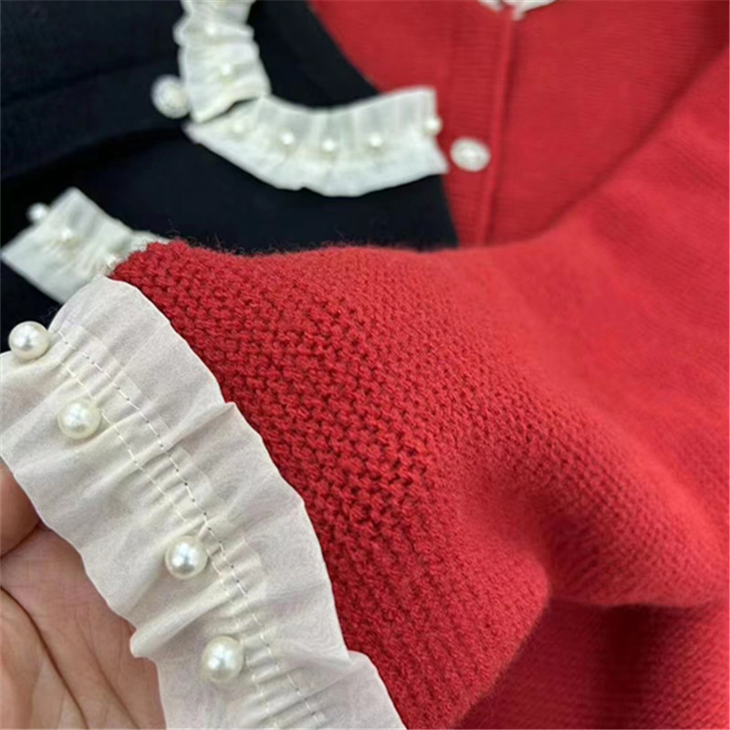 | nameOriginal | 2023 autumn and winter New round neck lace beaded long sleeve sweet knitted cardigan temperament short sweater women's coat |
