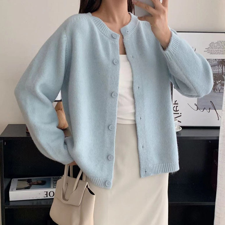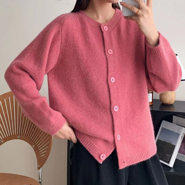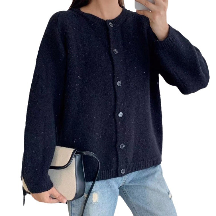 | nameOriginal | 2023 autumn and winter New round neck solid color top lazy style knitted cardigan Korean style soft glutinous loose sweater women's coat |