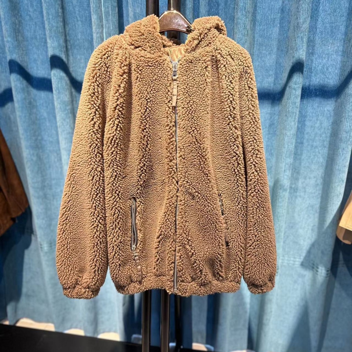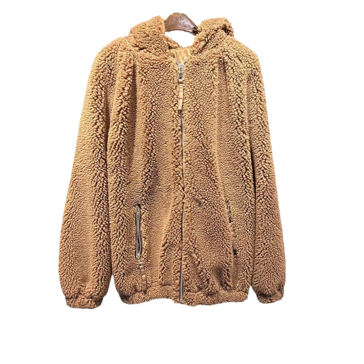 2023 autumn and winter New thickened warm fashion niche loose hooded lamb wool coat for women