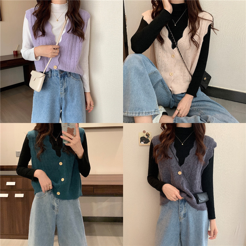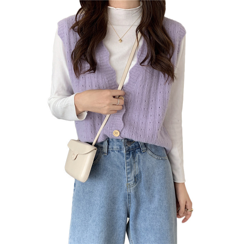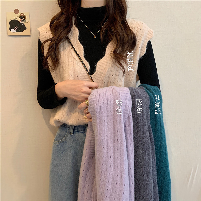 | nameOriginal | 2023 autumn and winter New V-neck vest coat hollow small fresh knitted vest cardigan women's gentle sweater shawl |