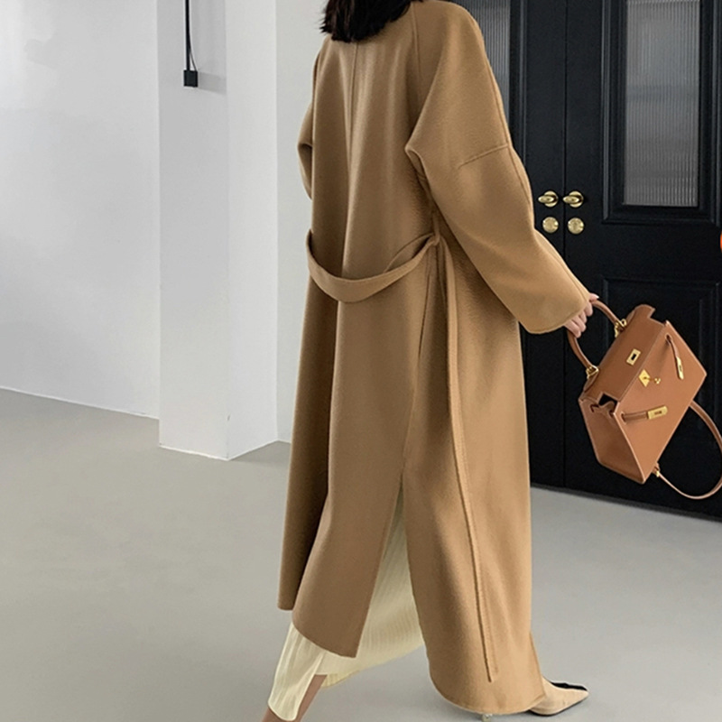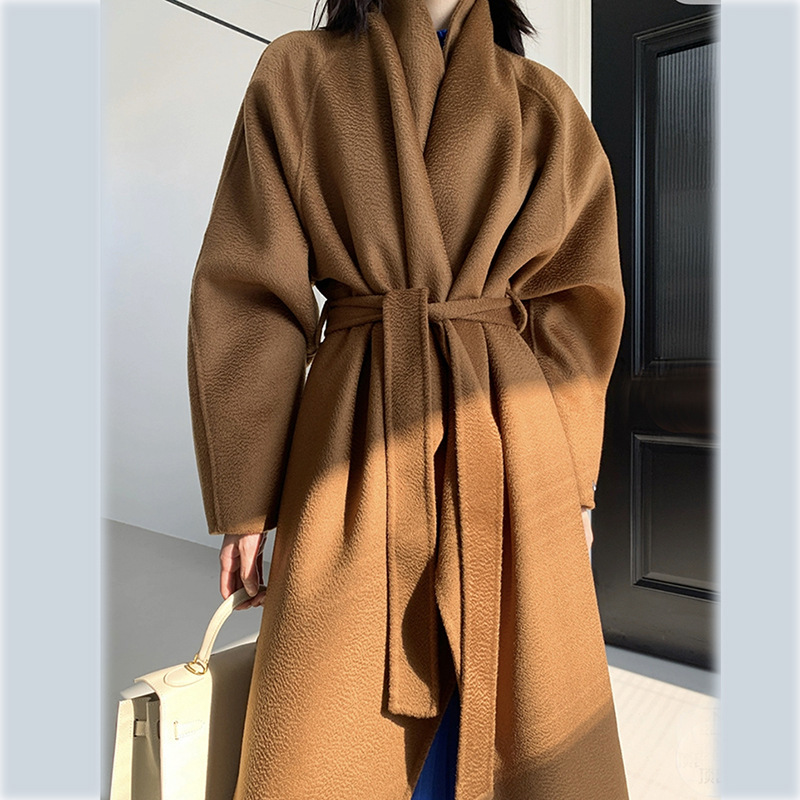 | nameOriginal | 2023 autumn and winter new water corrugated double-sided wool coat full wool loose lace-up coat double-sided nylon |