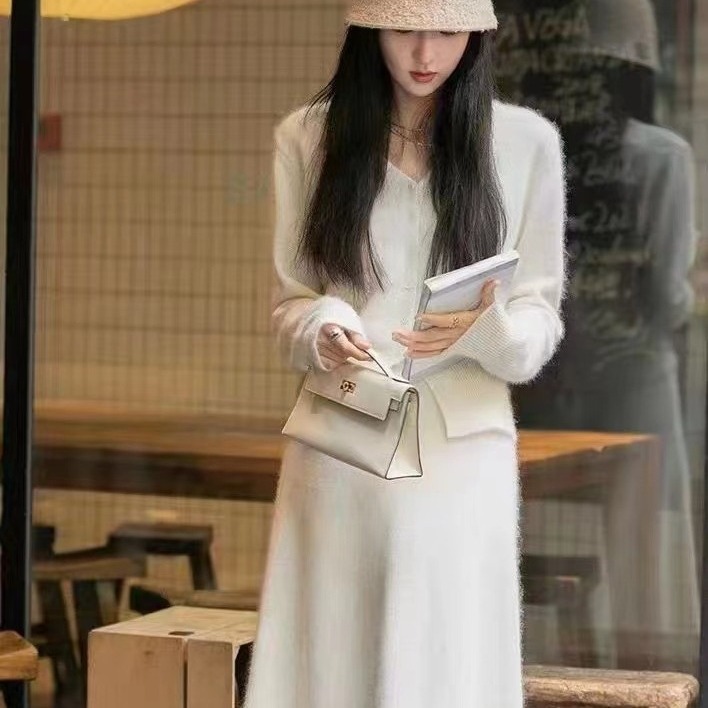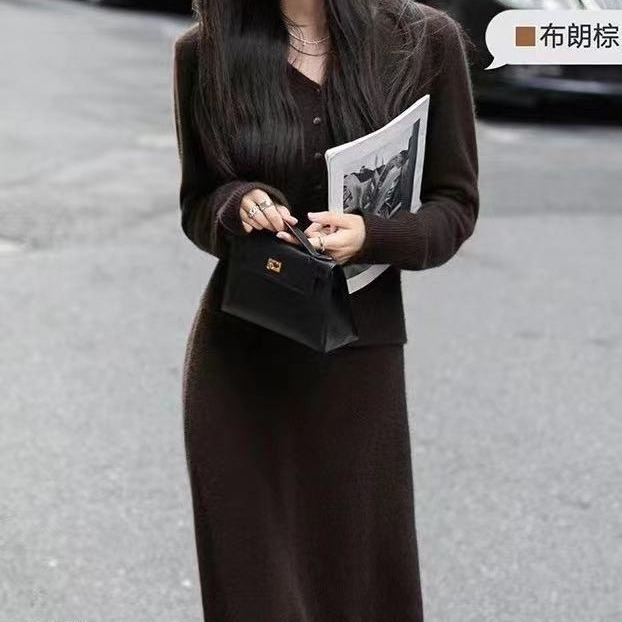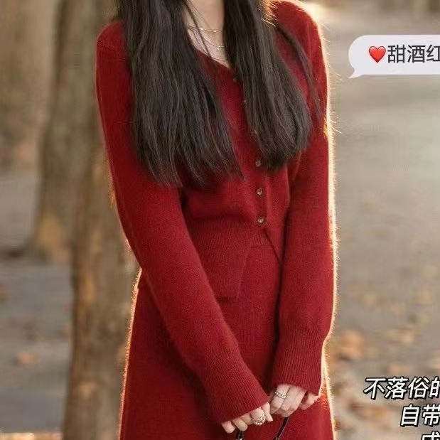 | nameOriginal | 2023 autumn and winter New Western style fashionable lazy style knitted cardigan top large swing skirt slimming sweater two-piece set for women |