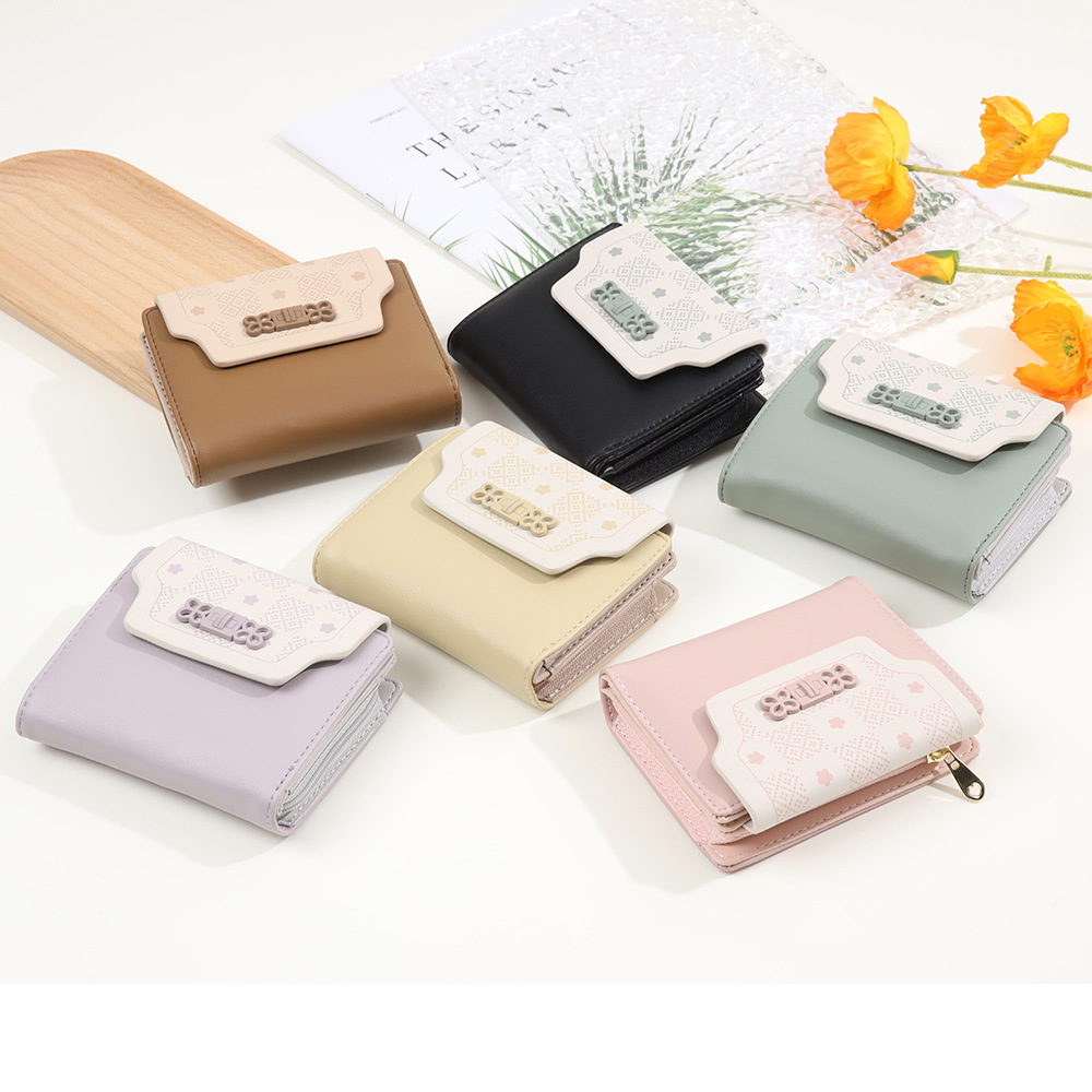 | nameOriginal | 2023 autumn and winter new women's short wallet Japanese and Korean fresh printed buckle three-fold zipper short women's coin purse |