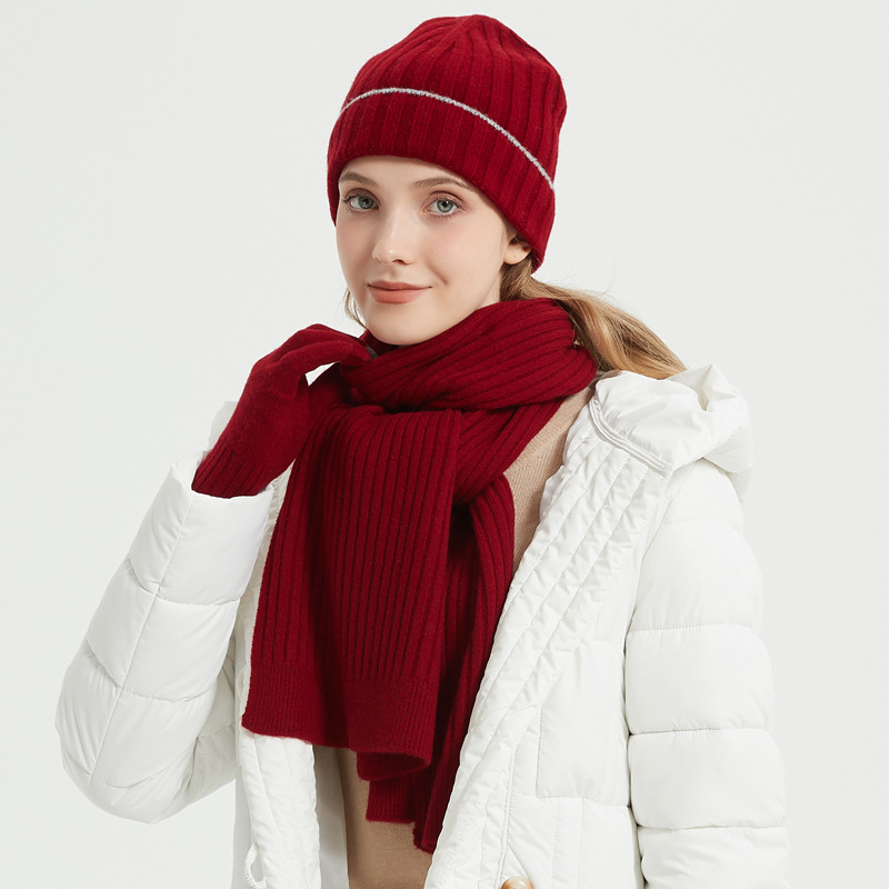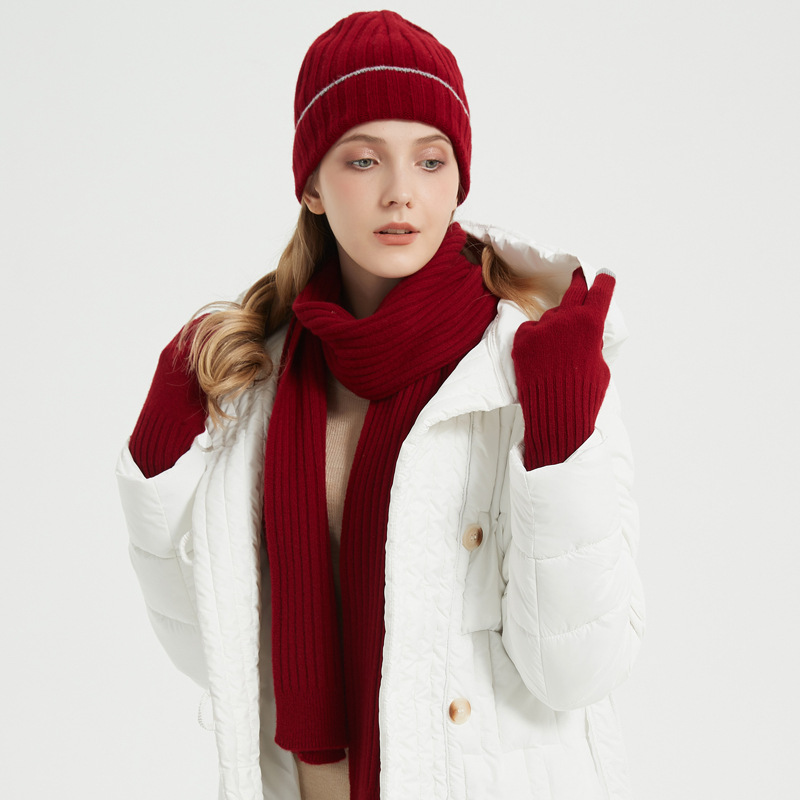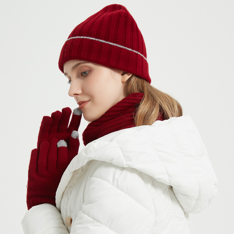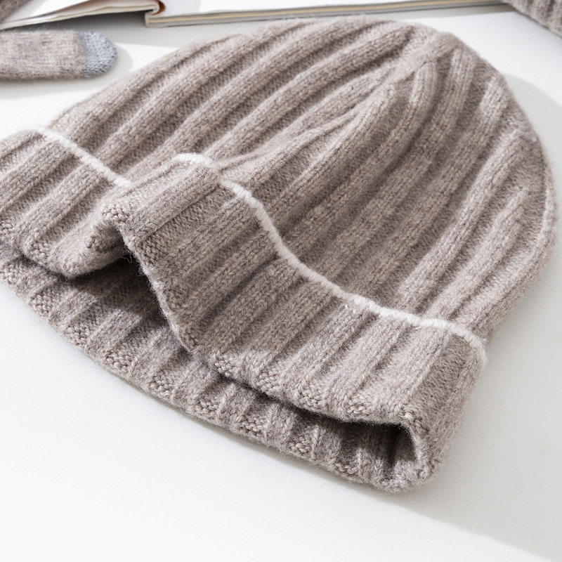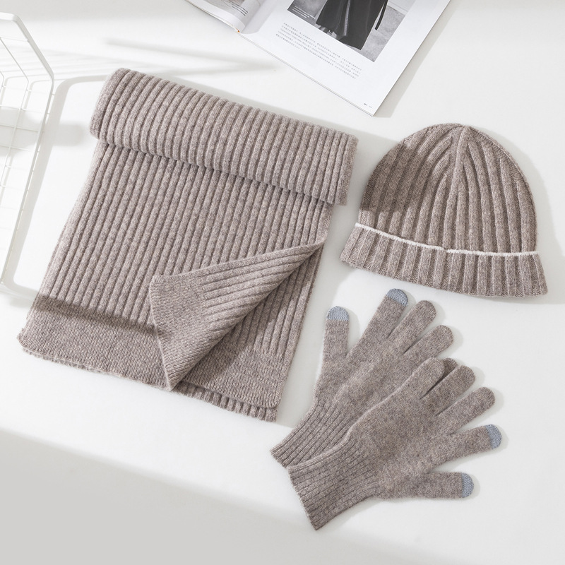 2023 autumn and winter pure wool knitted hat simple style solid color men’s and women’s same warm hat scarf gloves three-piece set