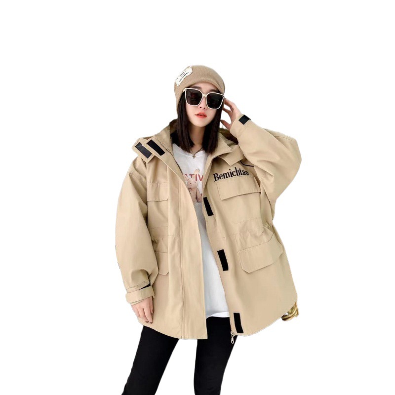 | nameOriginal | 2023 autumn and winter two cotton trench coat hooded heavy embroidery Korean style tight waist European style workwear style mid-length |