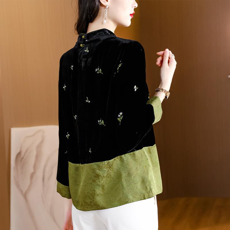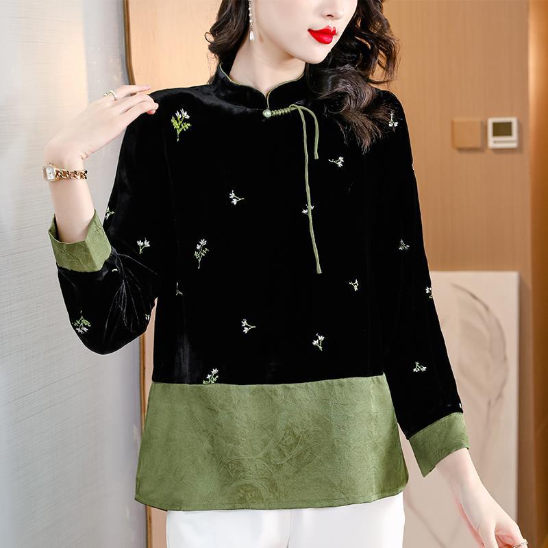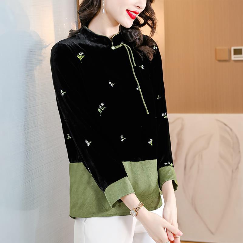 | nameOriginal | 2023 autumn fresh small flower embroidered silk velvet top women's new Chinese style stand collar red cloud yarn mulberry silk shirt |