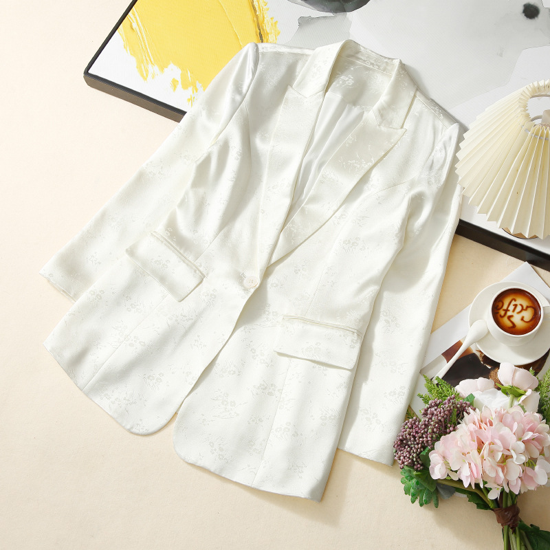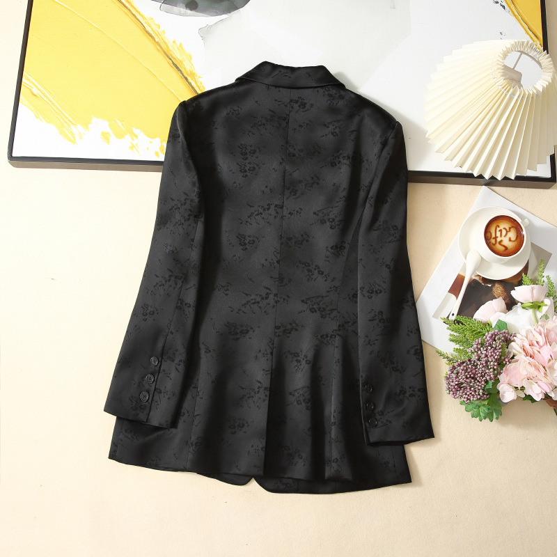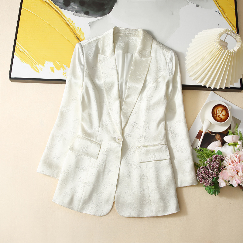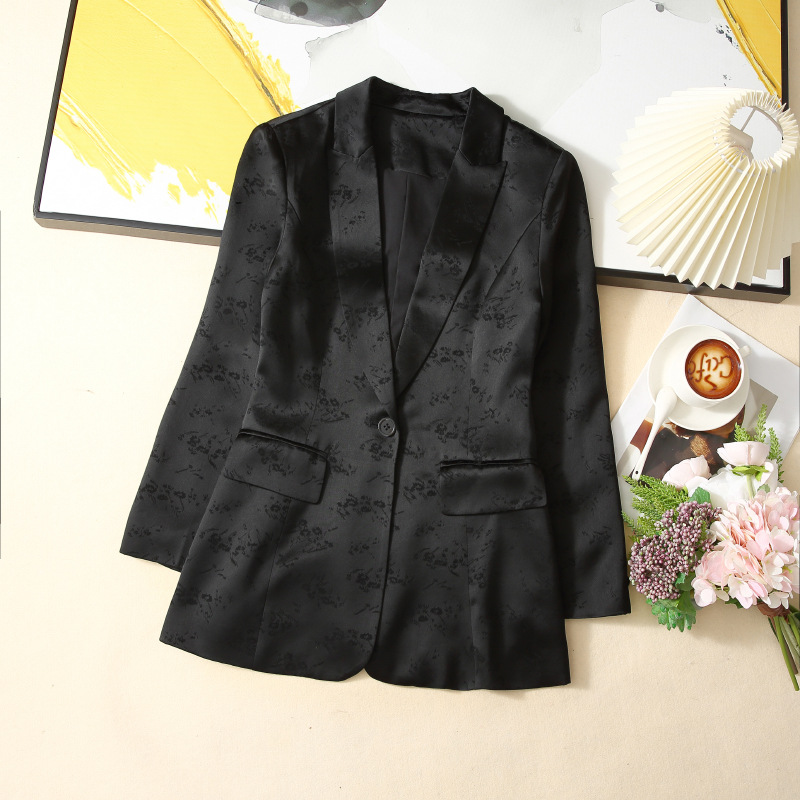 2023 autumn high-grade jacquard acetate satin suit jacket women's long-sleeved casual outer wear high-end small suit jacket