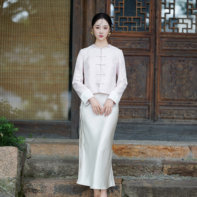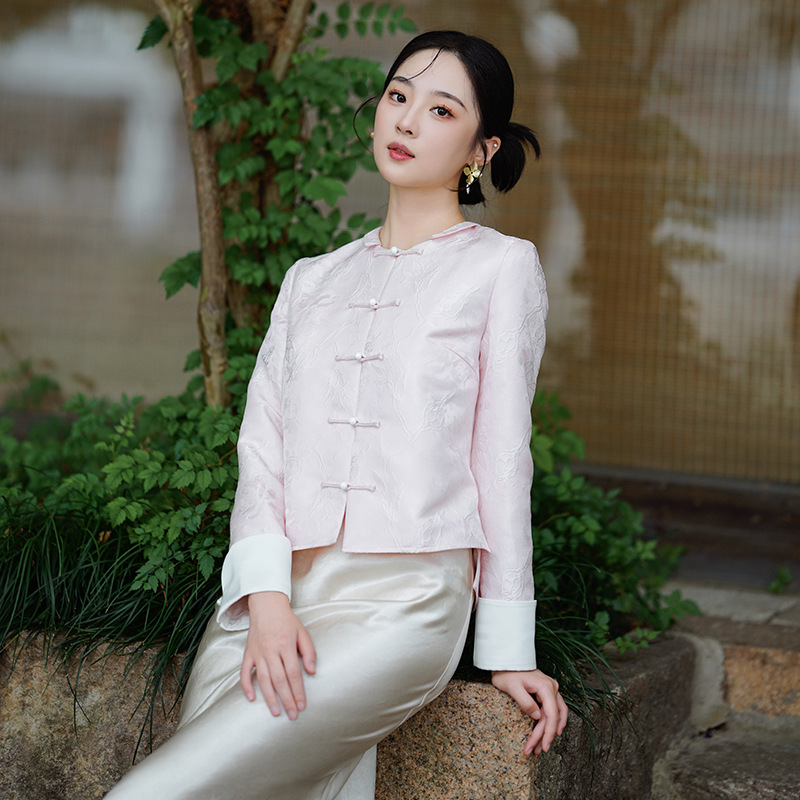 | nameOriginal | 2023 Autumn New Chinese style new Chinese style improved Tang suit top women's clothing improved pink tea man clothing T60364 |