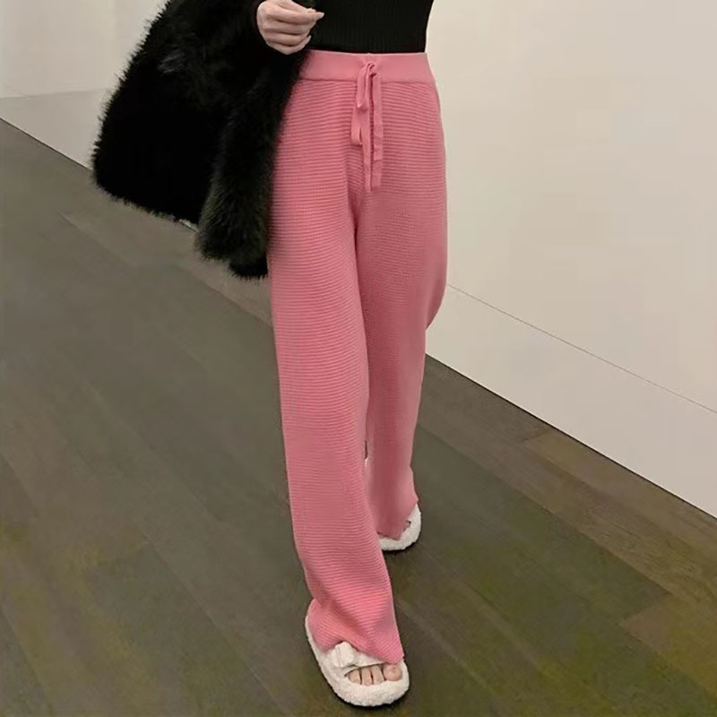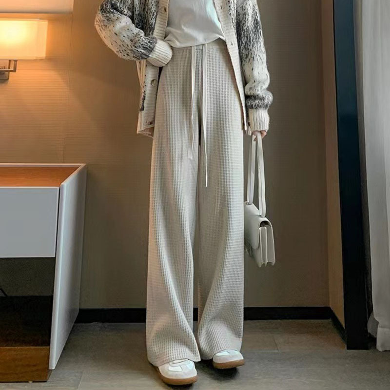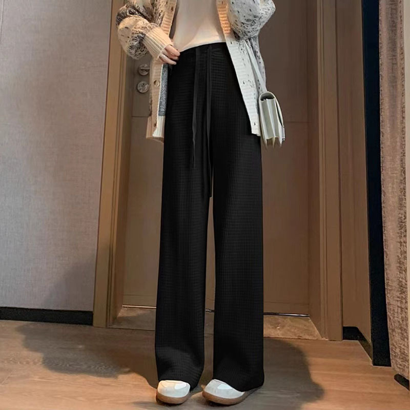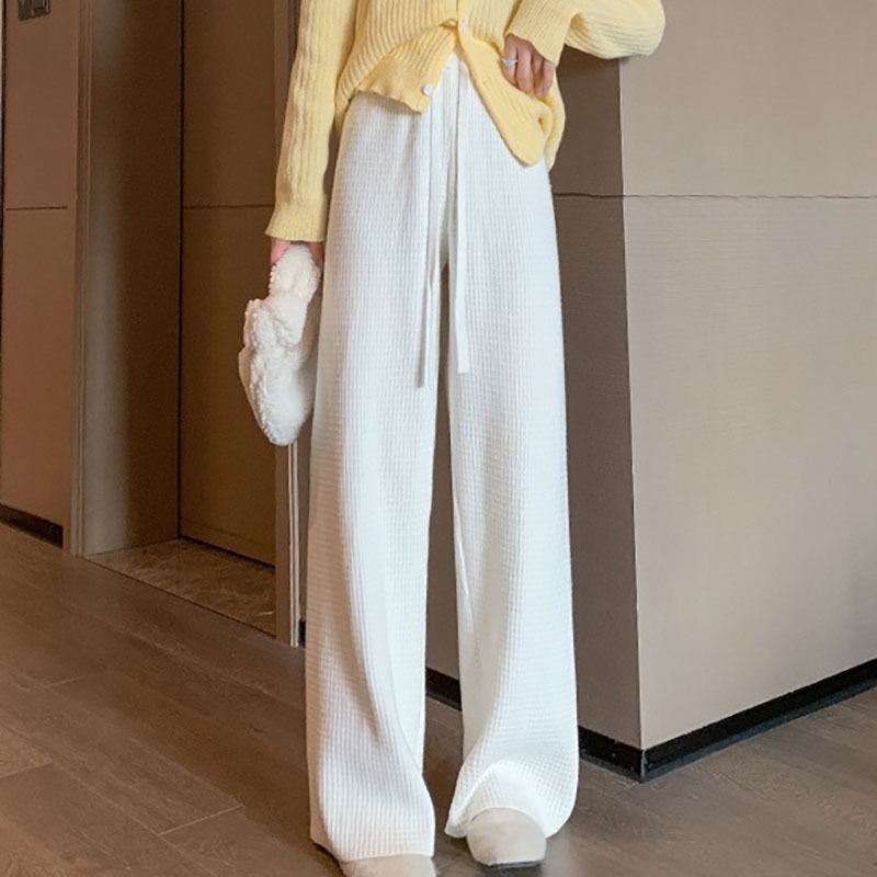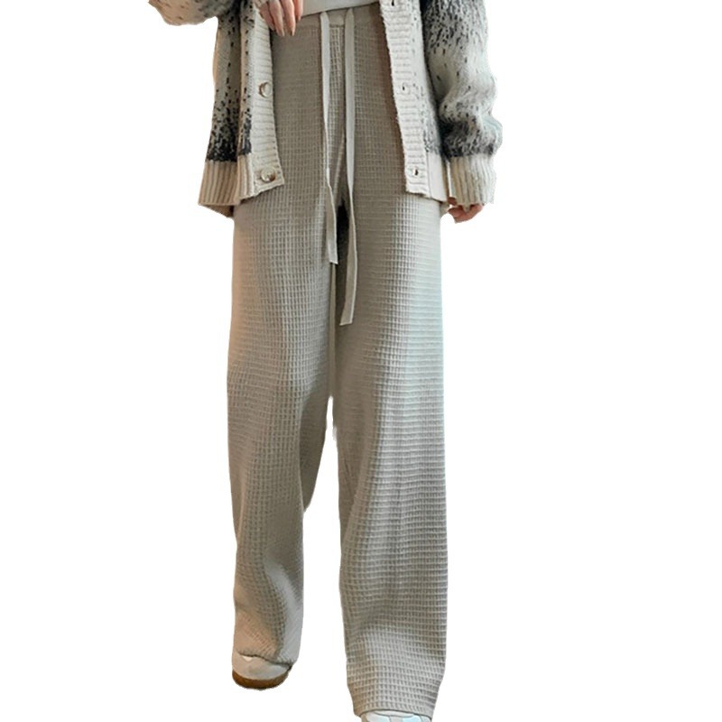 | nameOriginal | 2023 autumn new high waist knitted straight pants women's solid color loose casual drape waffle wide leg pants women's clothing |