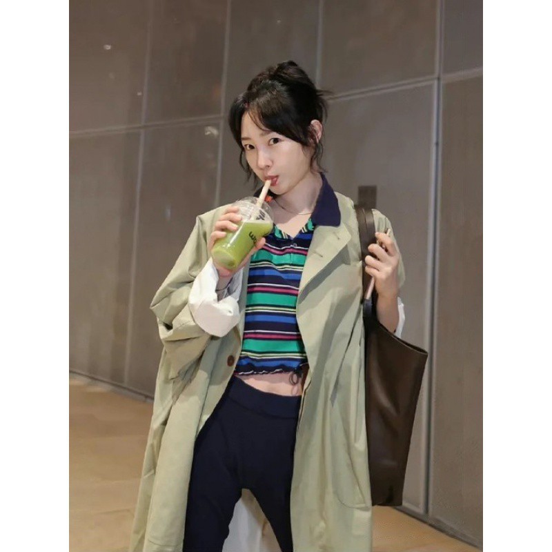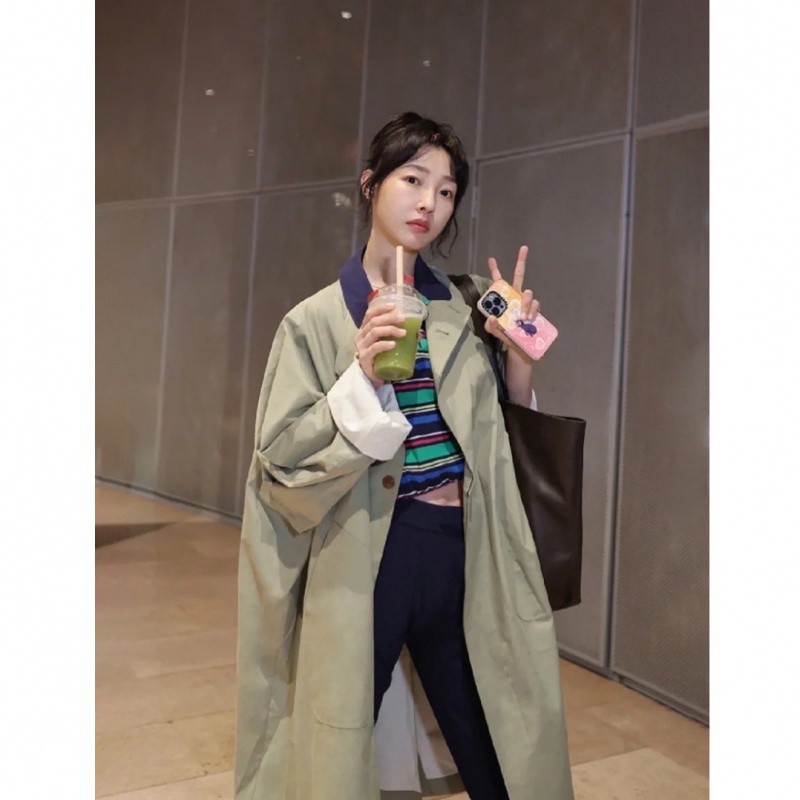 | nameOriginal | 2023 autumn new South Korea designer Baihe with a collar casual silhouette single-breasted long trench coat |