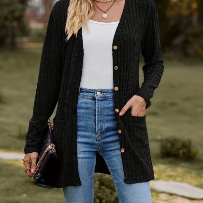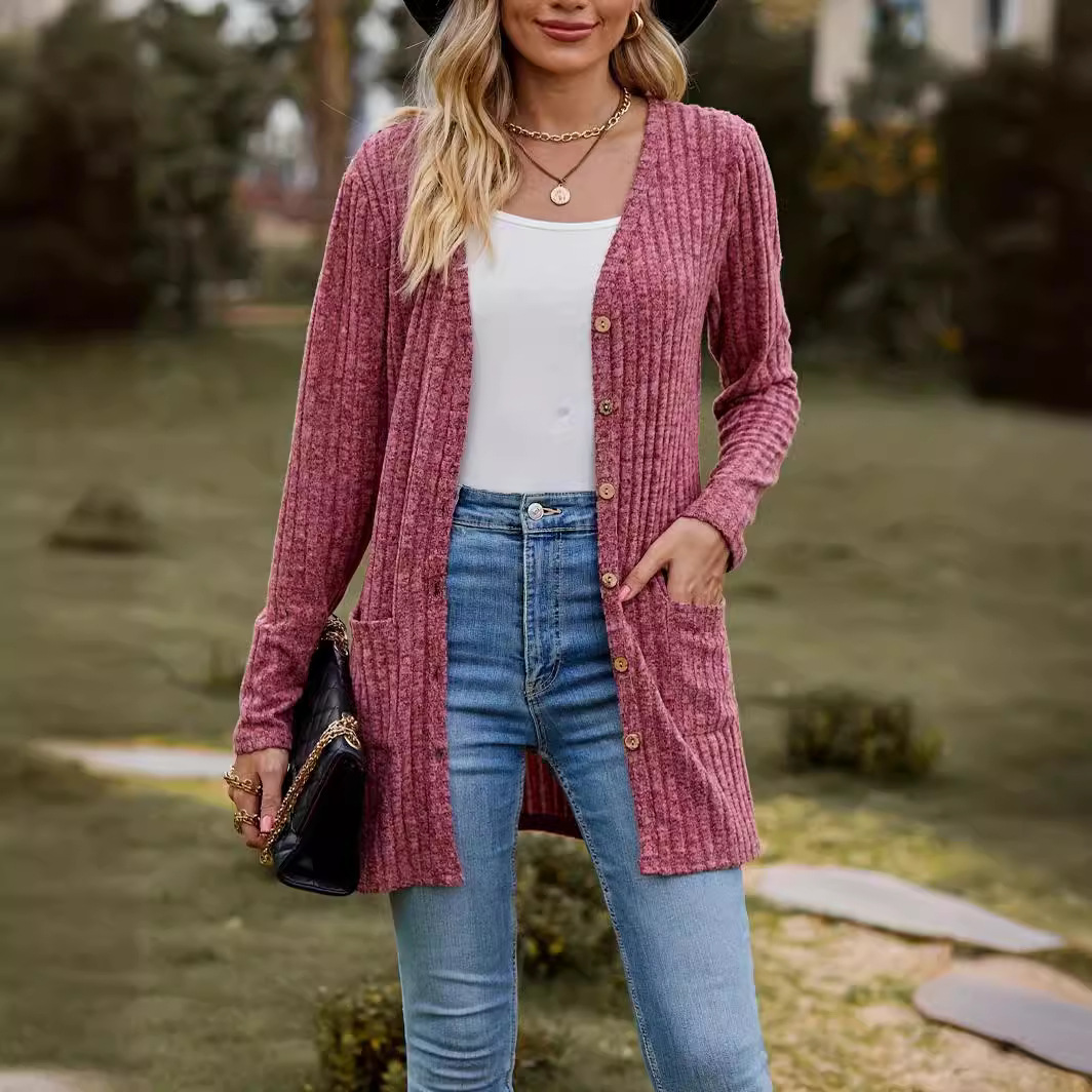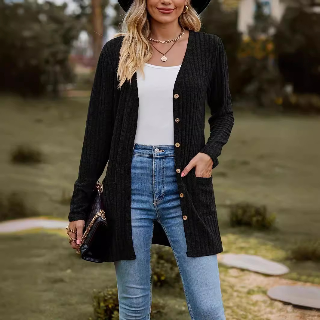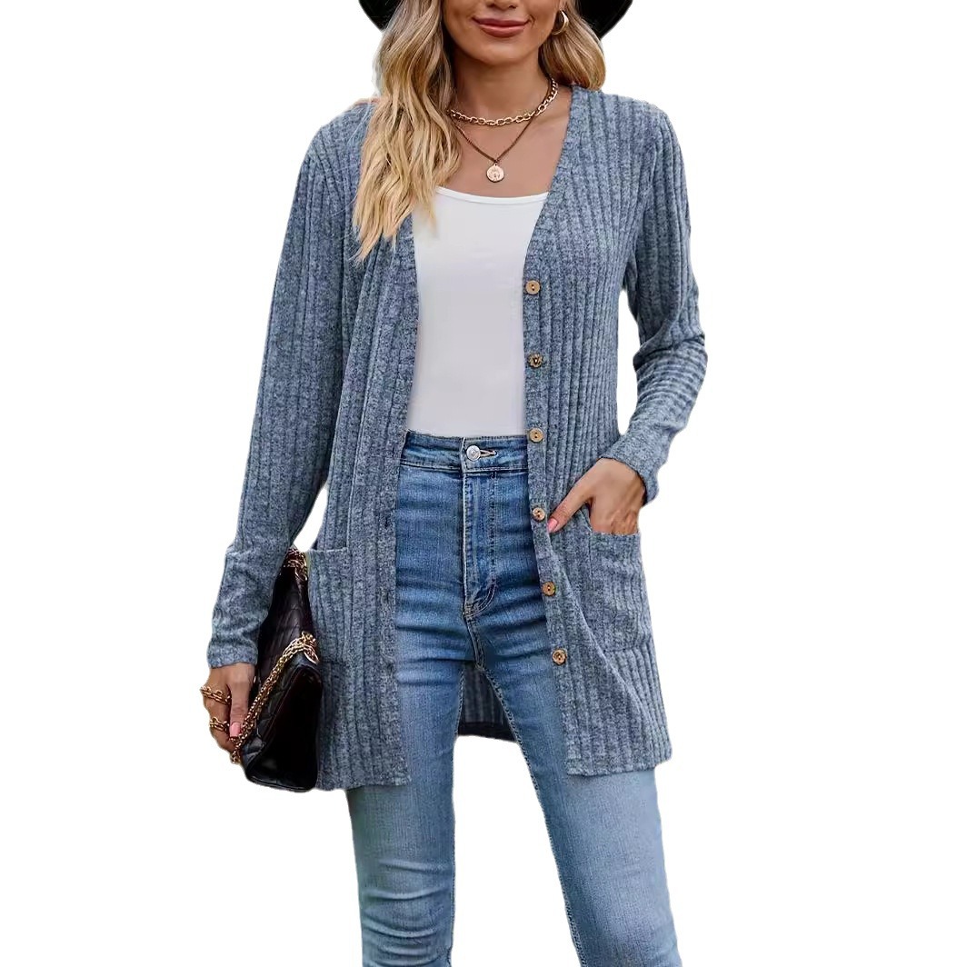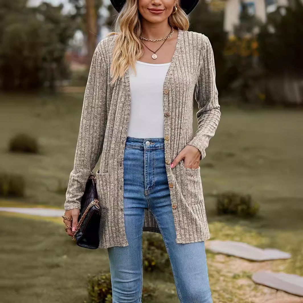 | nameOriginal | 2023 autumn new women's clothing Amazon Women's brushed pit solid color long sleeve women's cardigan jacket |