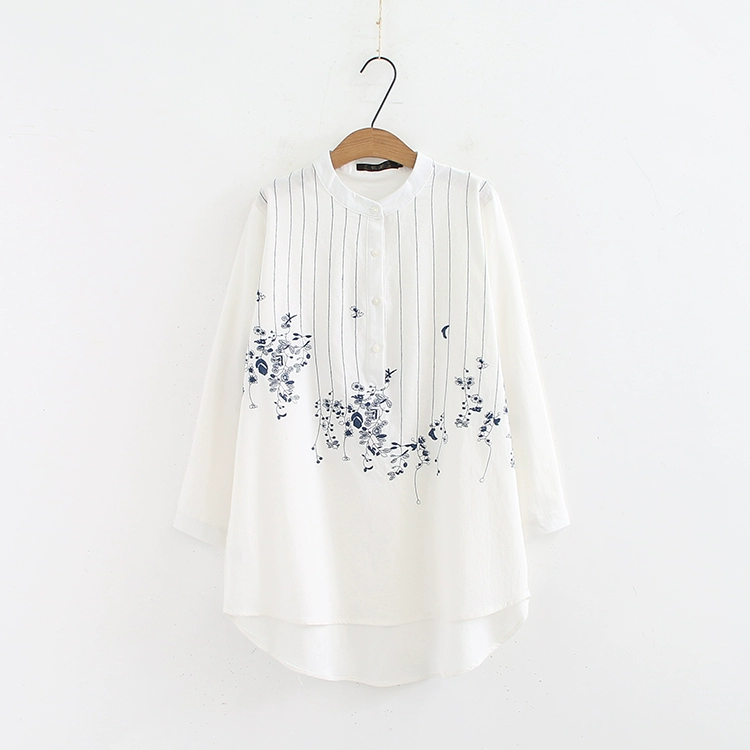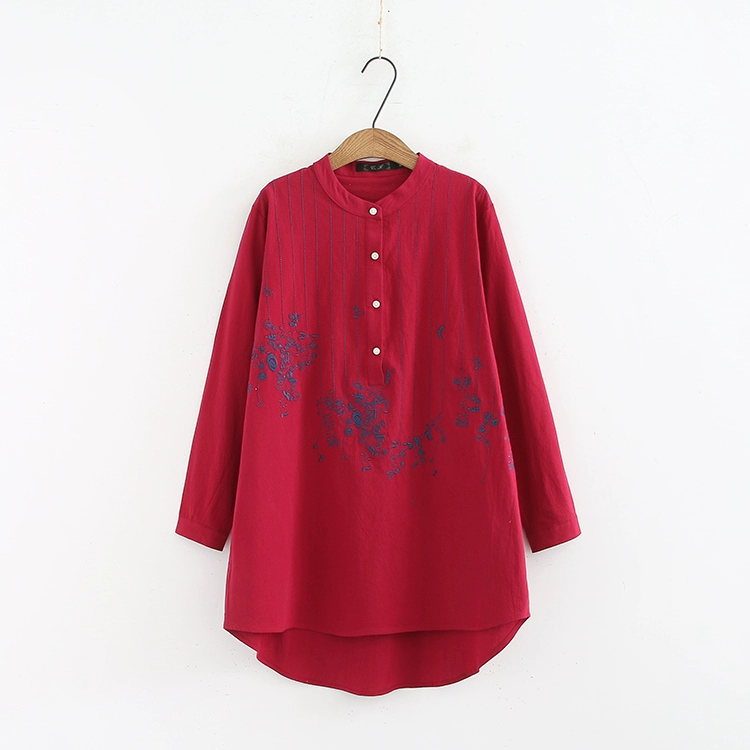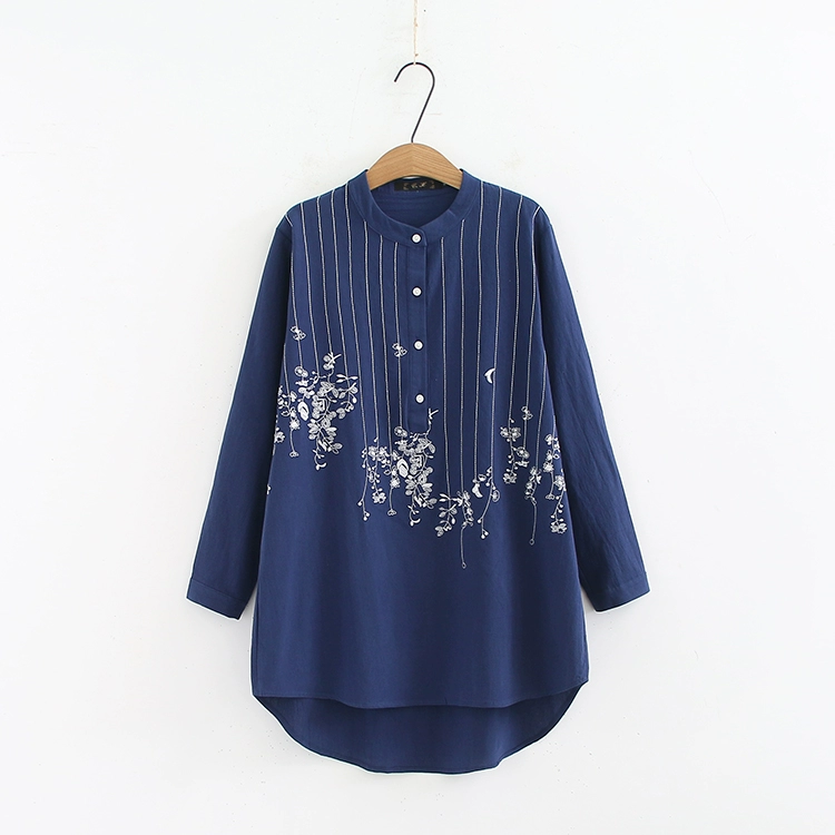 | nameOriginal | 2023 autumn women's new style plus size plus size fat MM Korean style mid-length cotton and linen embroidered pullover long-sleeved shirt |