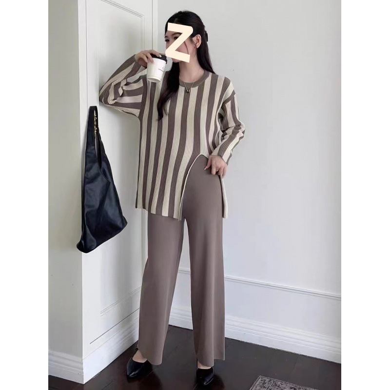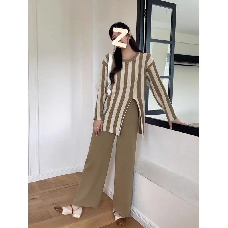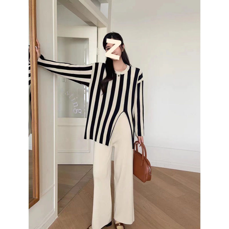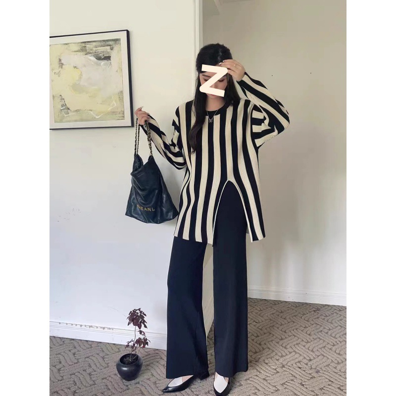 | nameOriginal | 2023 Chanel style elegant socialite knitted suit women's autumn irregular striped top casual wide-leg pants two-piece suit |