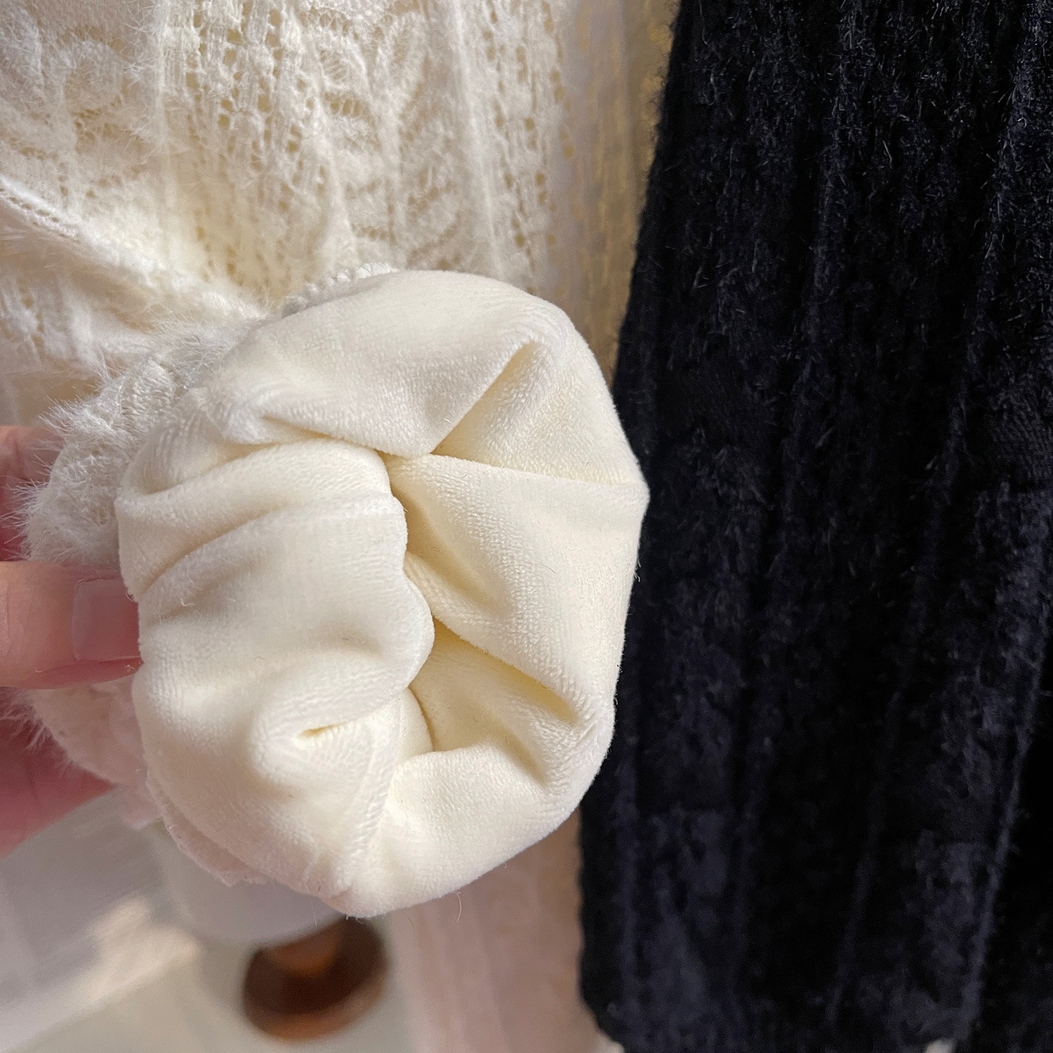 2023 children's clothing girls' lace bottoming shirt children's clothing winter fleece-lined thickened turtleneck long sleeve top 68110