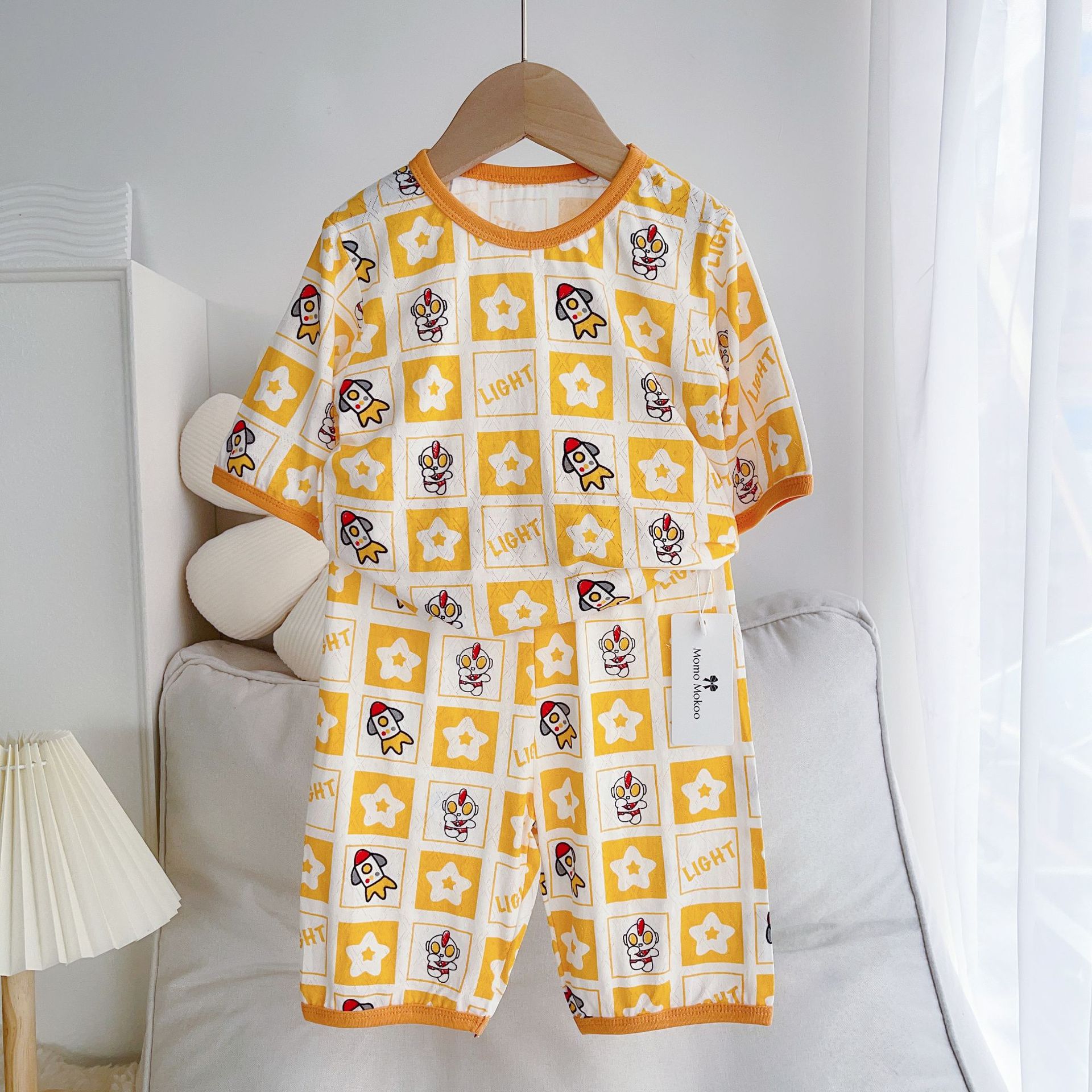 | nameOriginal | 2023 children's clothing new [bamboo cotton] Spring and Summer 7-quarter sleeve home wear suit boys and girls cute air conditioning pajamas |