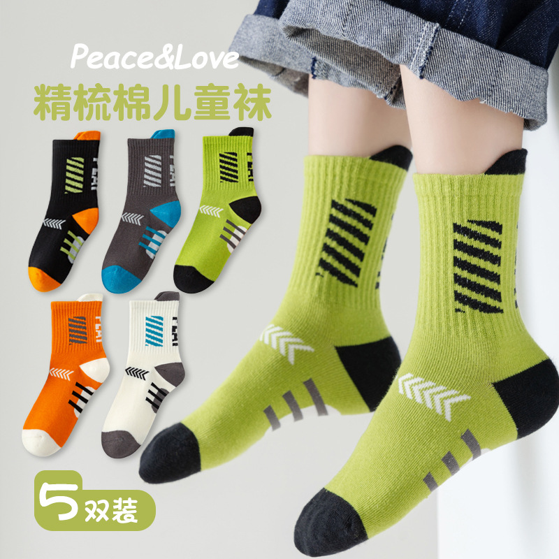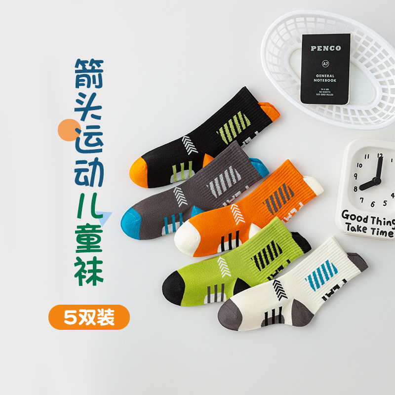 2023 children's socks autumn and winter Korean fashionable socks spring and autumn breathable mid-calf cotton socks boys and girls sports socks Arrow