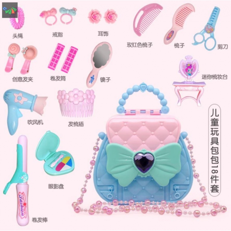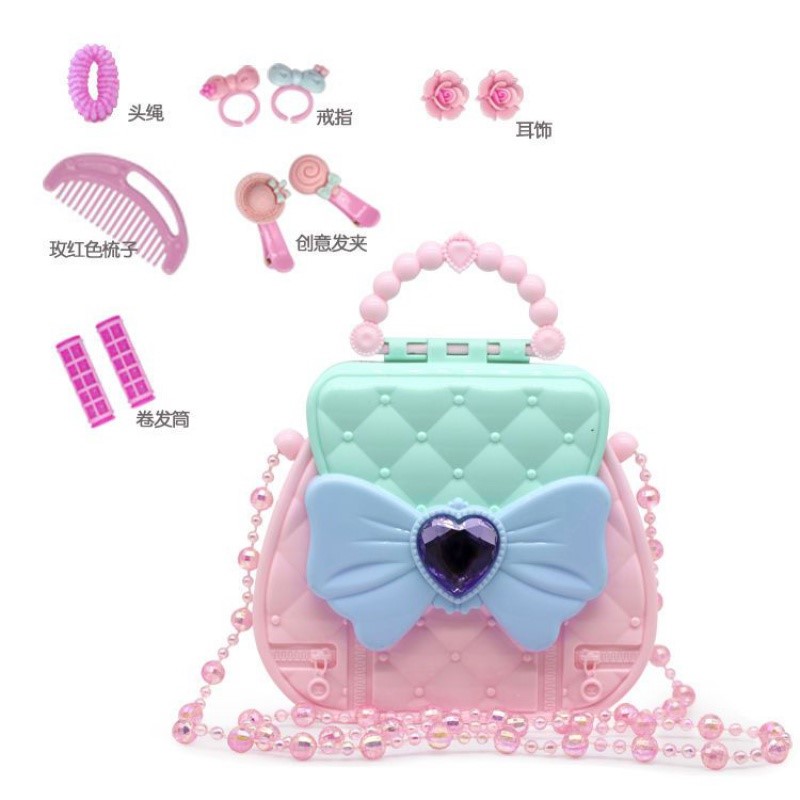 | nameOriginal | 2023 children's toys cosmetics handbag suit play house earrings ring small comb baby girl suit |