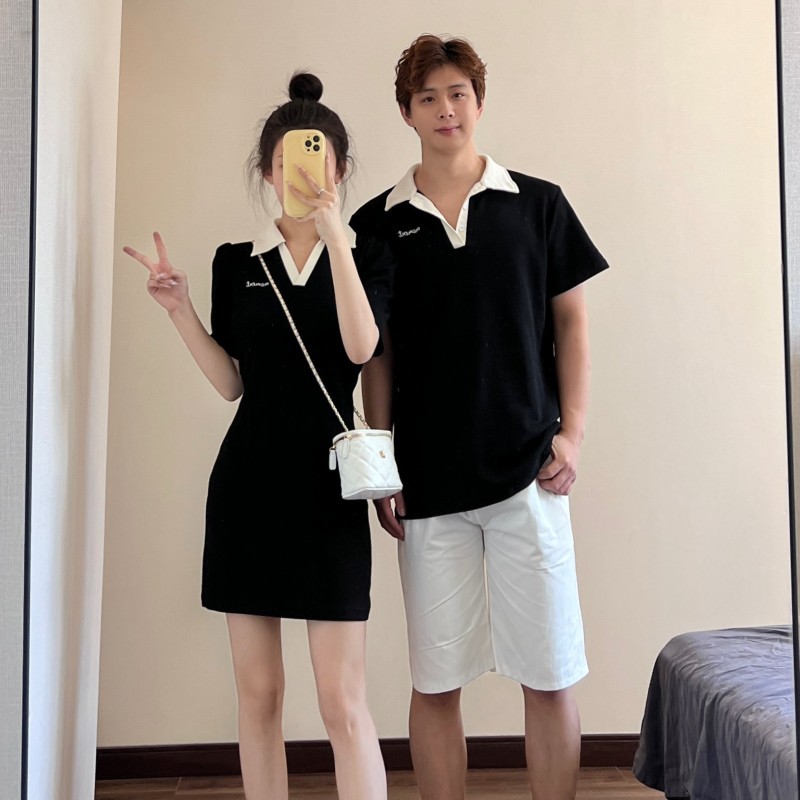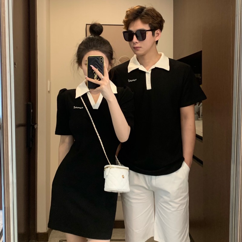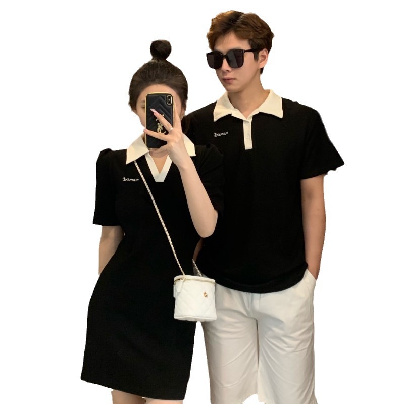 | nameOriginal | 2023 Couple's Summer POLO Collar Short College Style Short Sleeve Dress Couple's Clothing Women's Tight Waist French Skirt |