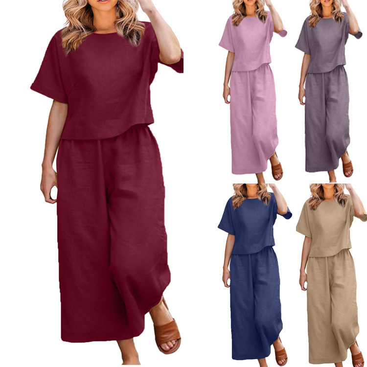 | nameOriginal | 2023 cross-border Amazon new leisure Europe and the United States large size suit loose cotton and linen solid color shirt trousers two-piece set |