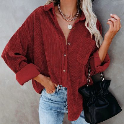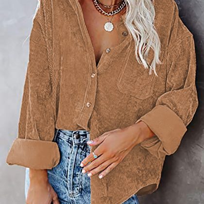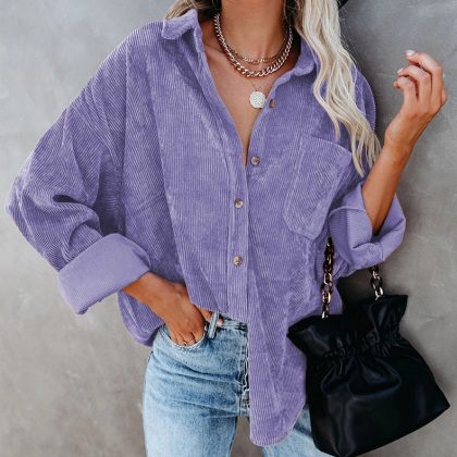 | nameOriginal | 2023 cross-border Europe and the United States wish Amazon new autumn and winter women's shirt solid color lapel corduroy casual coat |