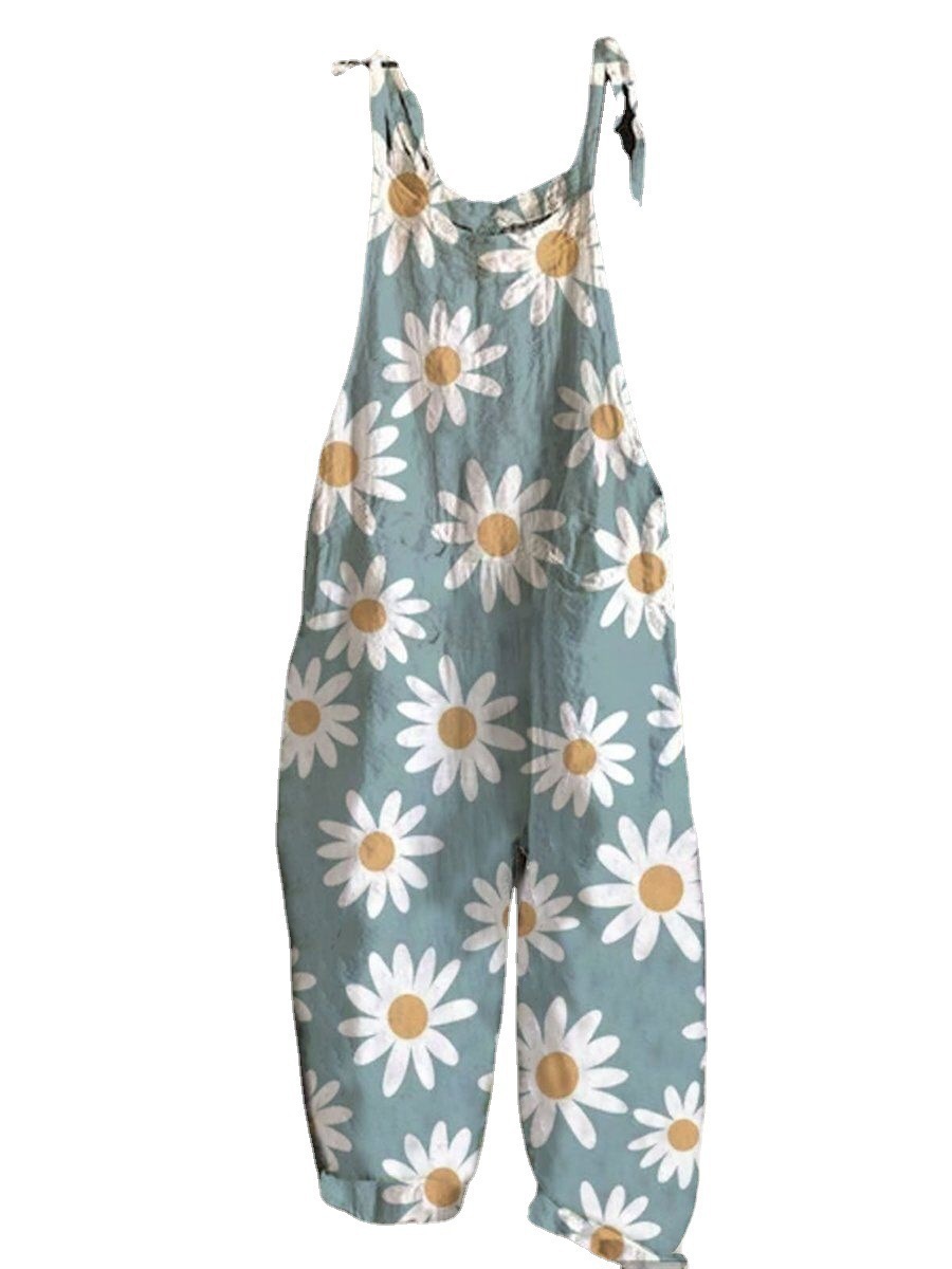 2023 cross-border women’s clothing Amazon Europe and the United States summer new sweet small fresh print retro wide leg women’s jumpsuit