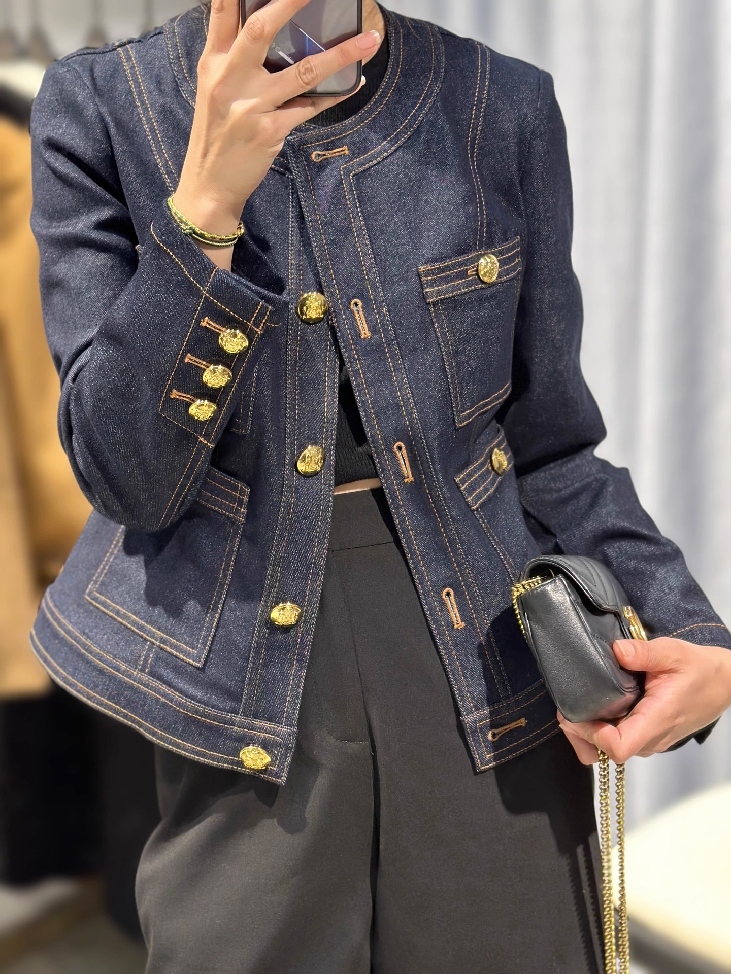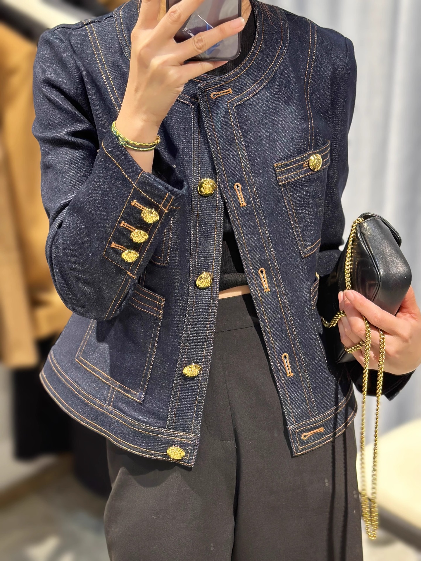 2023 early autumn new high-grade Denim short coat women’s Chanel style contrast color bright line golden buttons