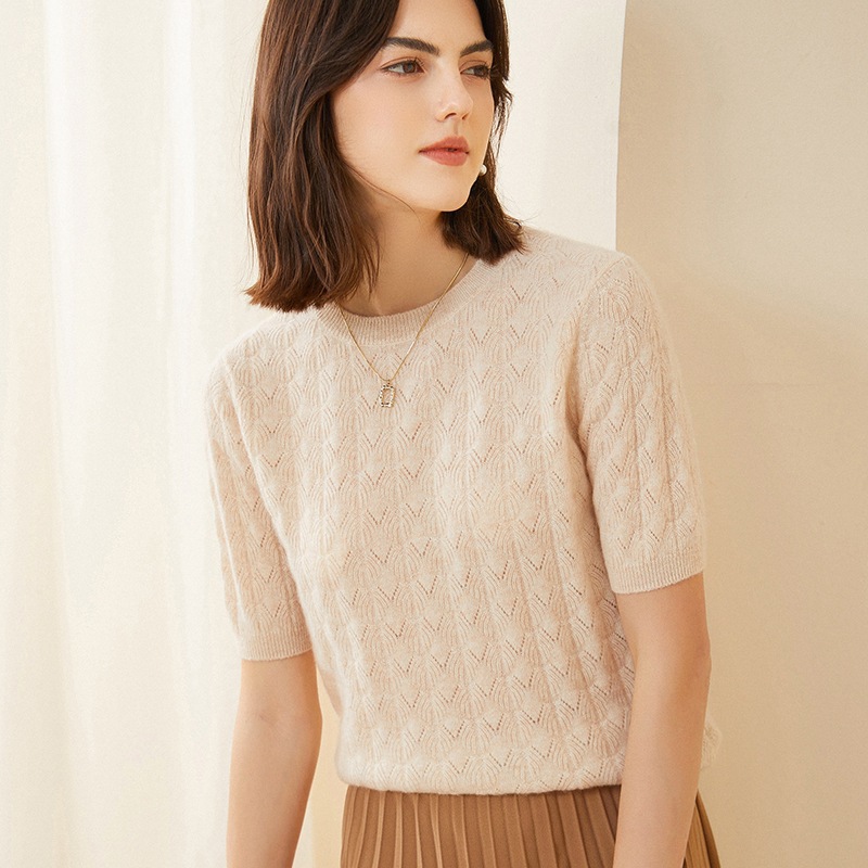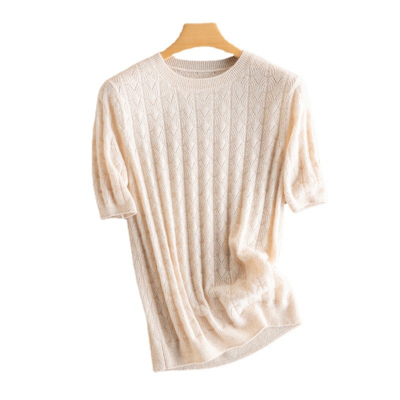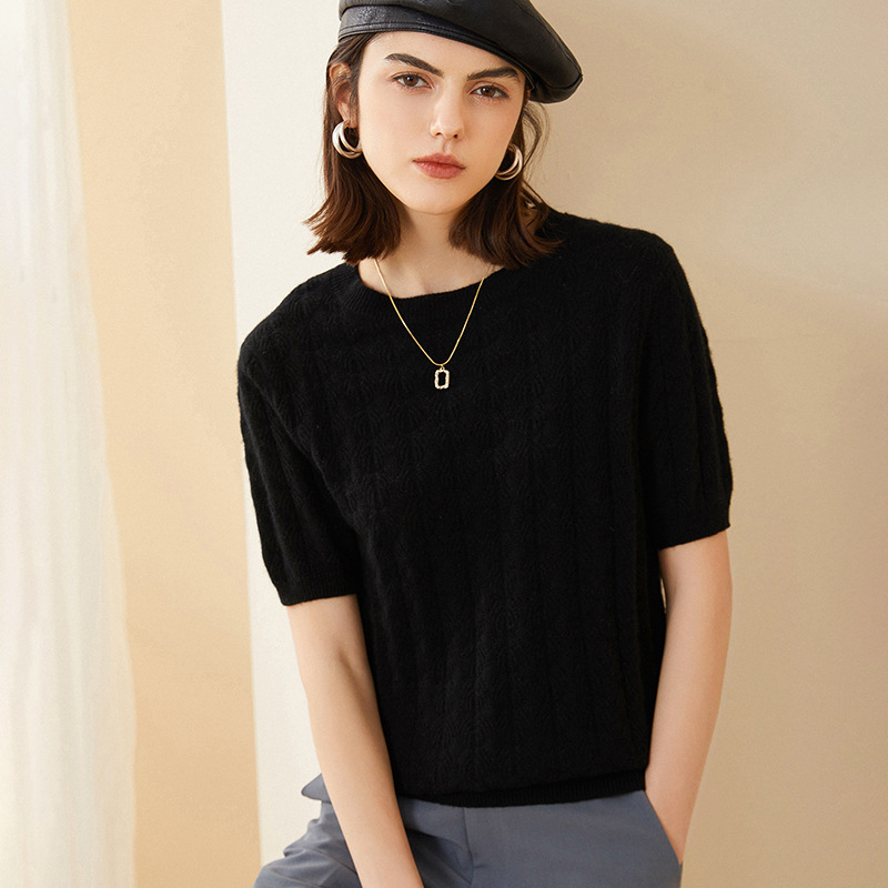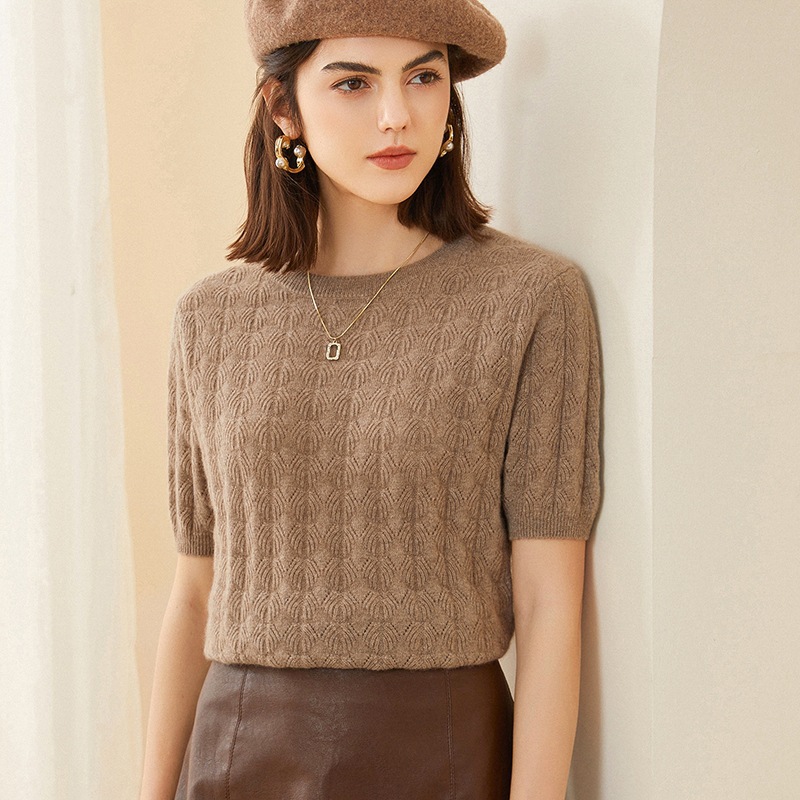 | nameOriginal | 2023 early autumn new round neck hollow-out 100 pure cashmere sweater short sleeve women's loose thin winter bottoming sweater |