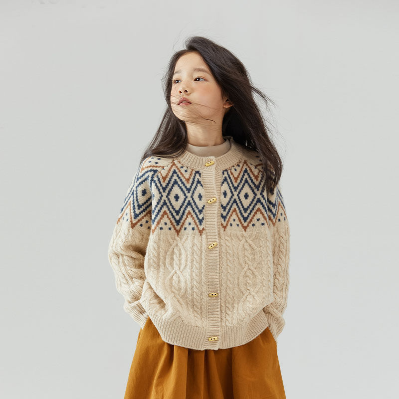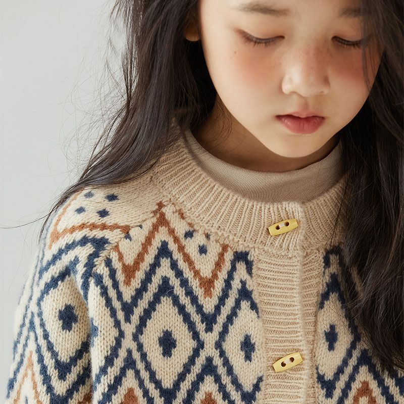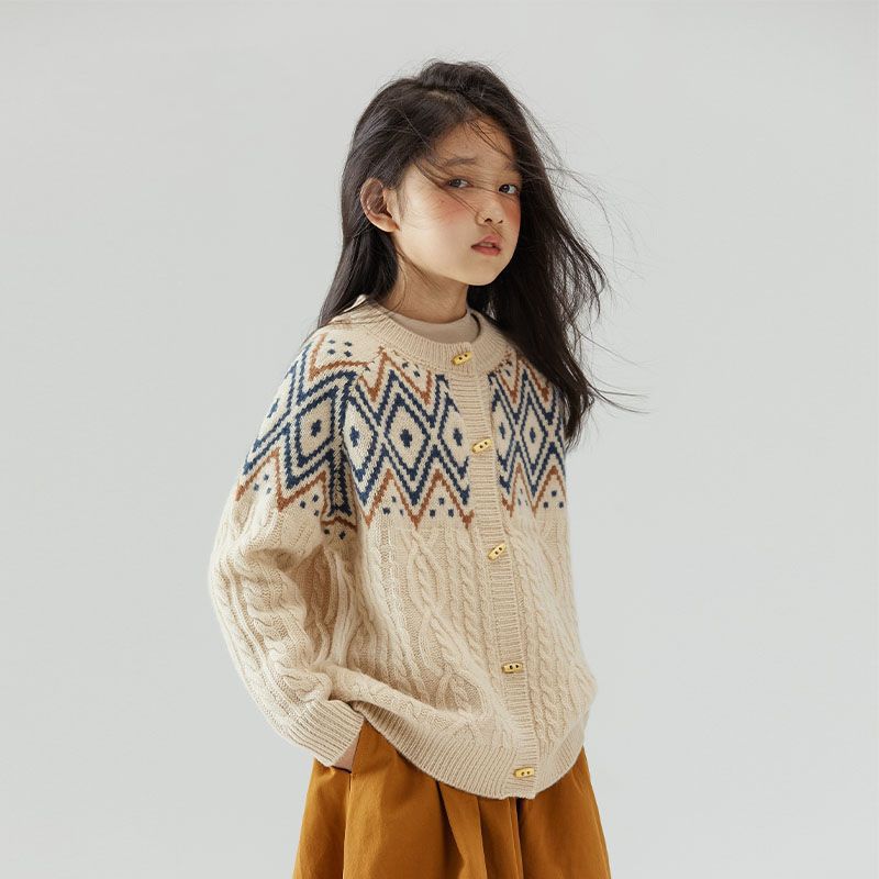 2023 Early Spring Children’s Sweater Spring and Autumn Cardigan Large Children’s Girls’ Jacket Coat Knitted Sweater Korean Style Fashionable Inner Wear