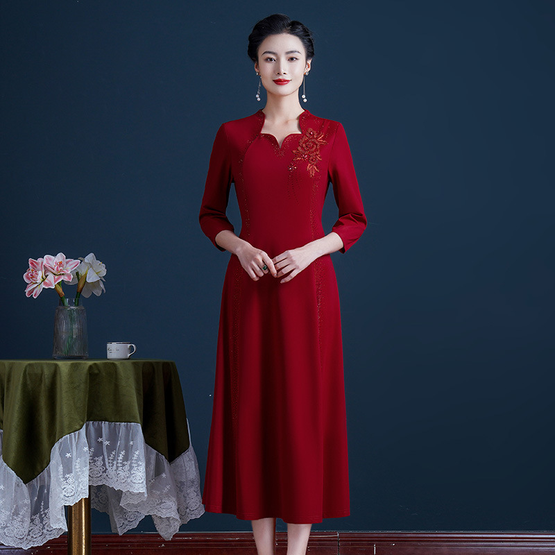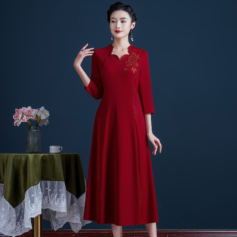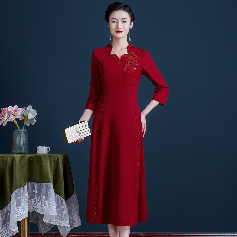 | nameOriginal | 2023 early spring new knitted gilding beaded slim version dress elegant temperament happy mother-in-law women's clothing |