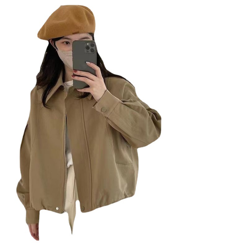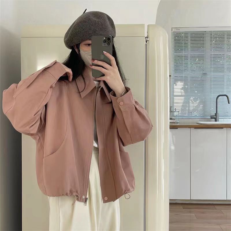| nameOriginal | 2023 early spring new solid color lapel loose short jacket women's Korean-style loose all-match hem drawstring short jacket |