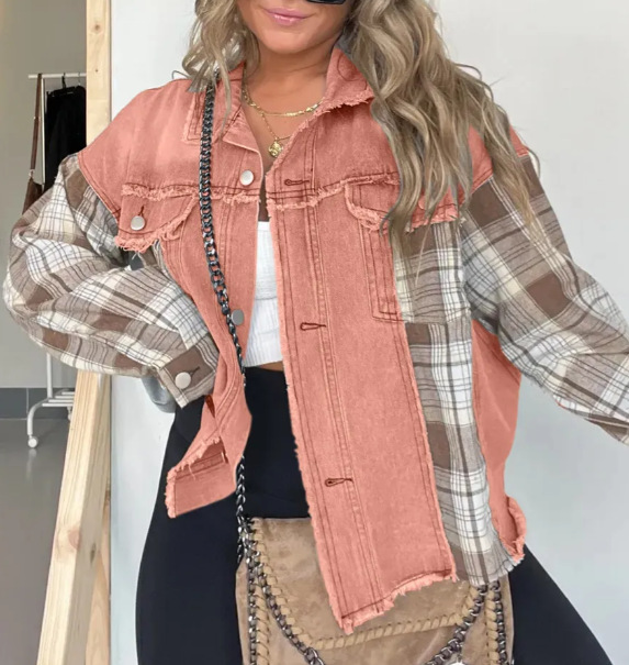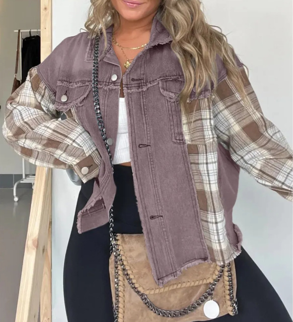 | nameOriginal | 2023 Europe and the United States cross-border Amazon independent station grid stitching wash water Denim coat |