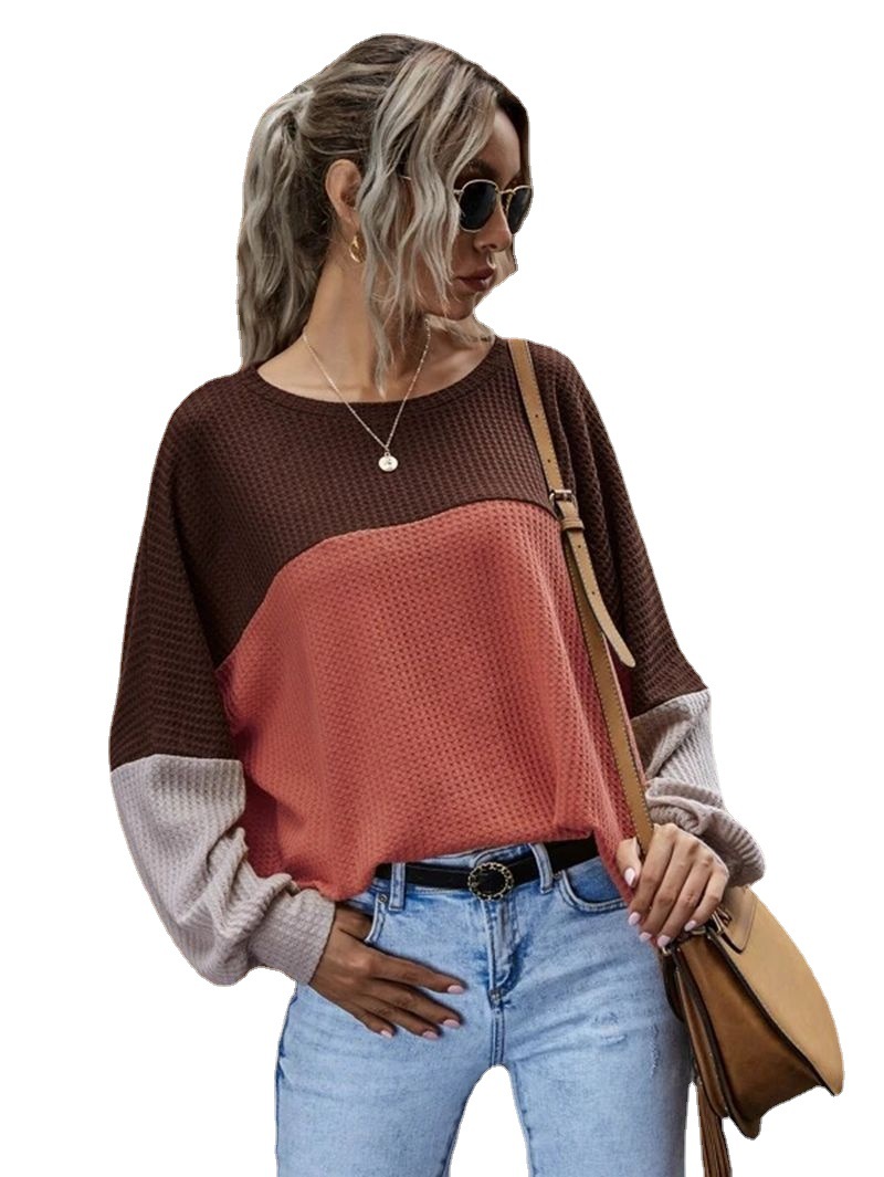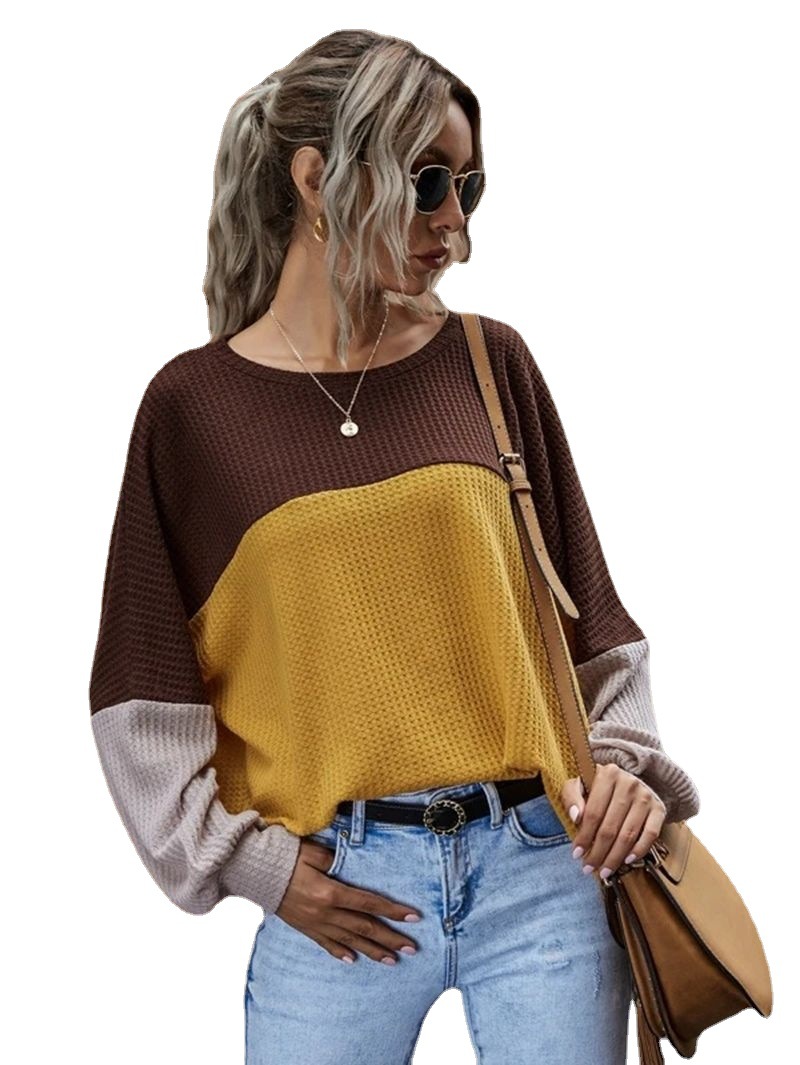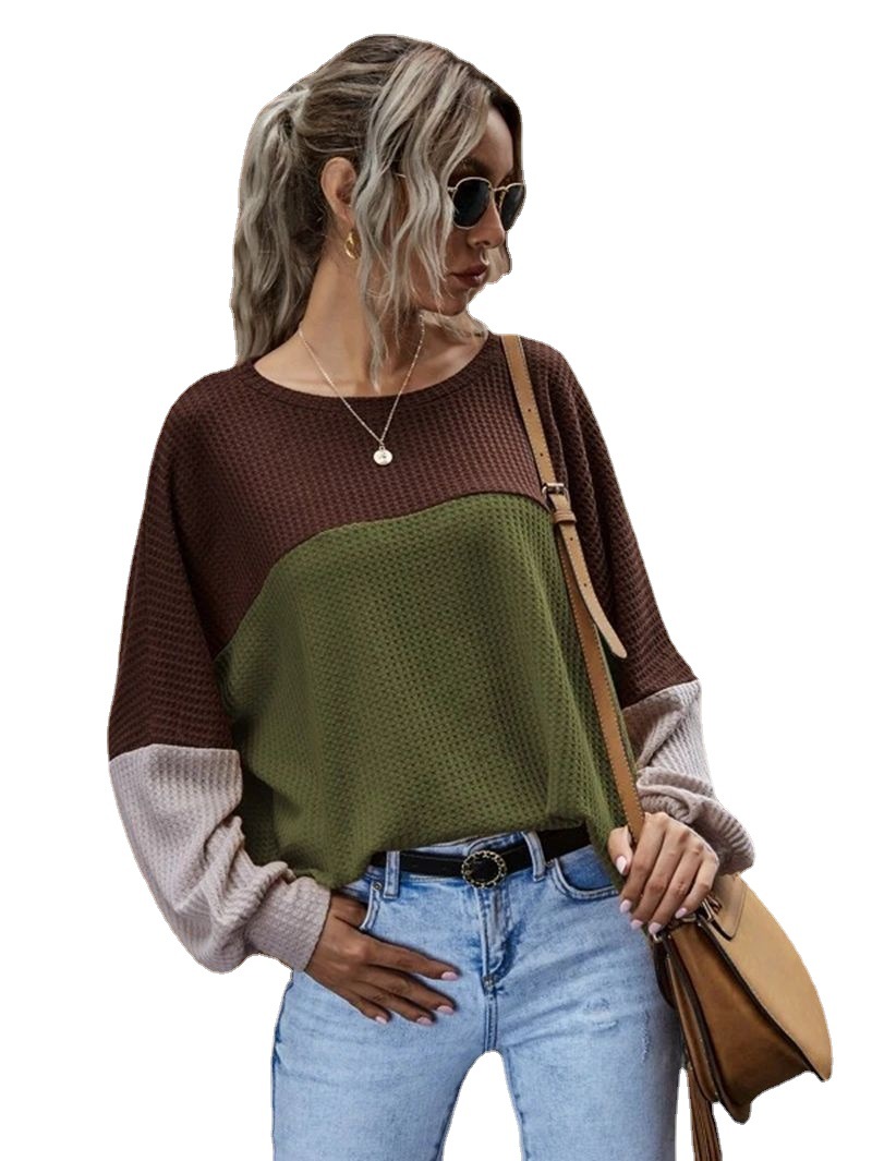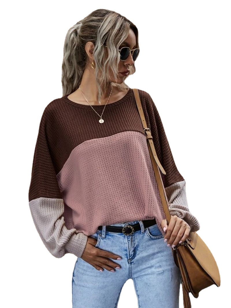 | nameOriginal | 2023 Europe and the United States foreign trade cross-border new Amazon explosive color stitching waffle long sleeve casual top women |