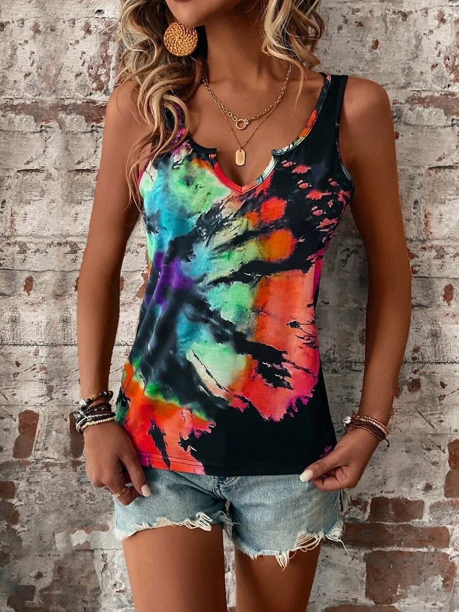 | nameOriginal | 2023 European and American Amazon cross-border women's clothing summer new random printing painted V-neck open vest top for women |