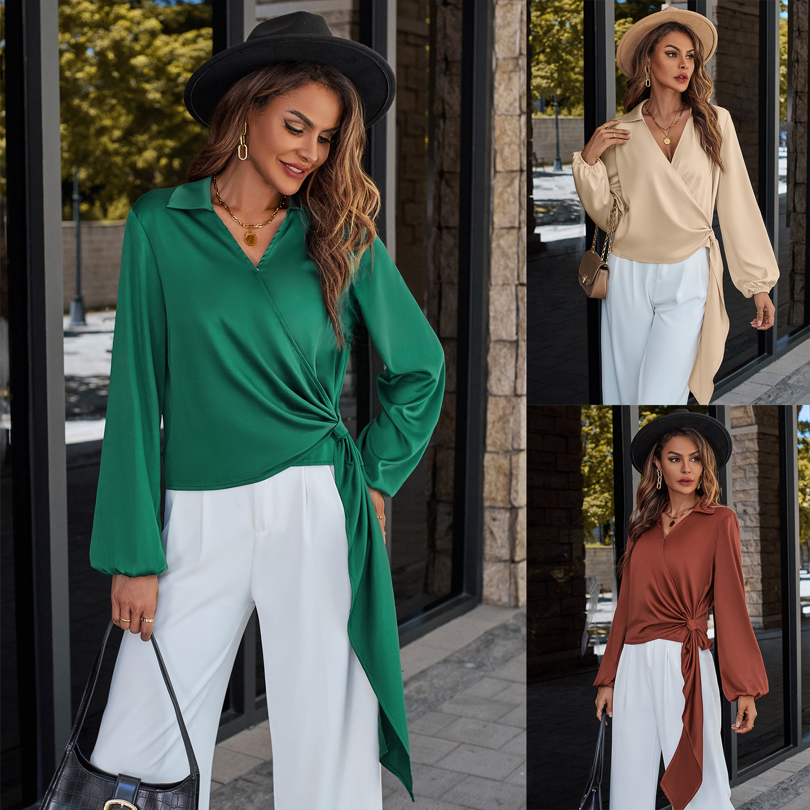 | nameOriginal | 2023 European and American autumn and winter fashion Amazon popular foreign trade women's casual solid color V-neck trendy ribbon top for women |
