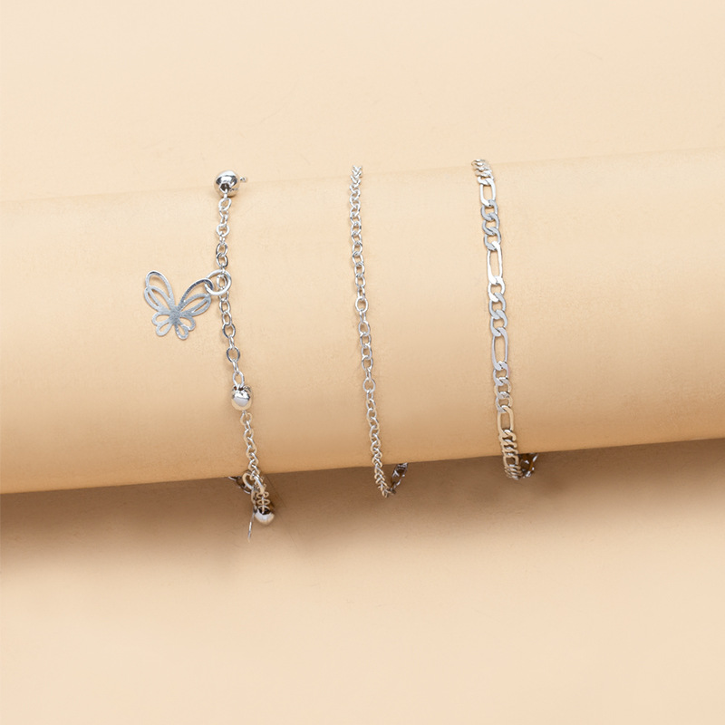 2023 European and American cross-border jewelry personalized all-match alloy stacked bracelet French exquisite butterfly bracelet wholesale