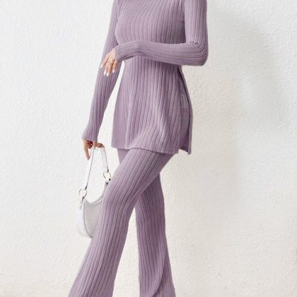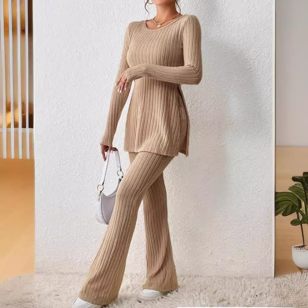 | nameOriginal | 2023 European and American cross-border women's clothing solid color sexy casual long sleeve round neck split fashion temperament two-piece set suit |