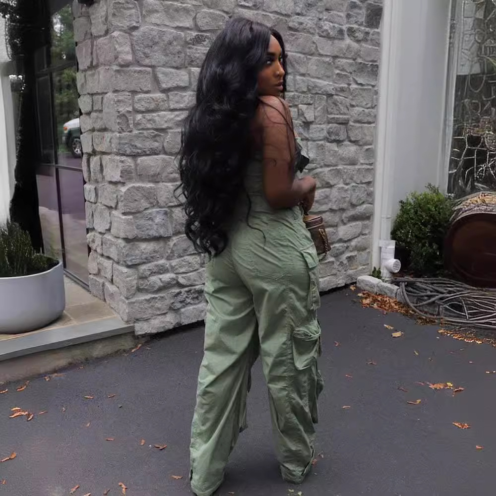 2023 European and American Cross-border Women’s New Fashion Sexy Strapless Single-breasted Multi-pocket Workwear Pants K304