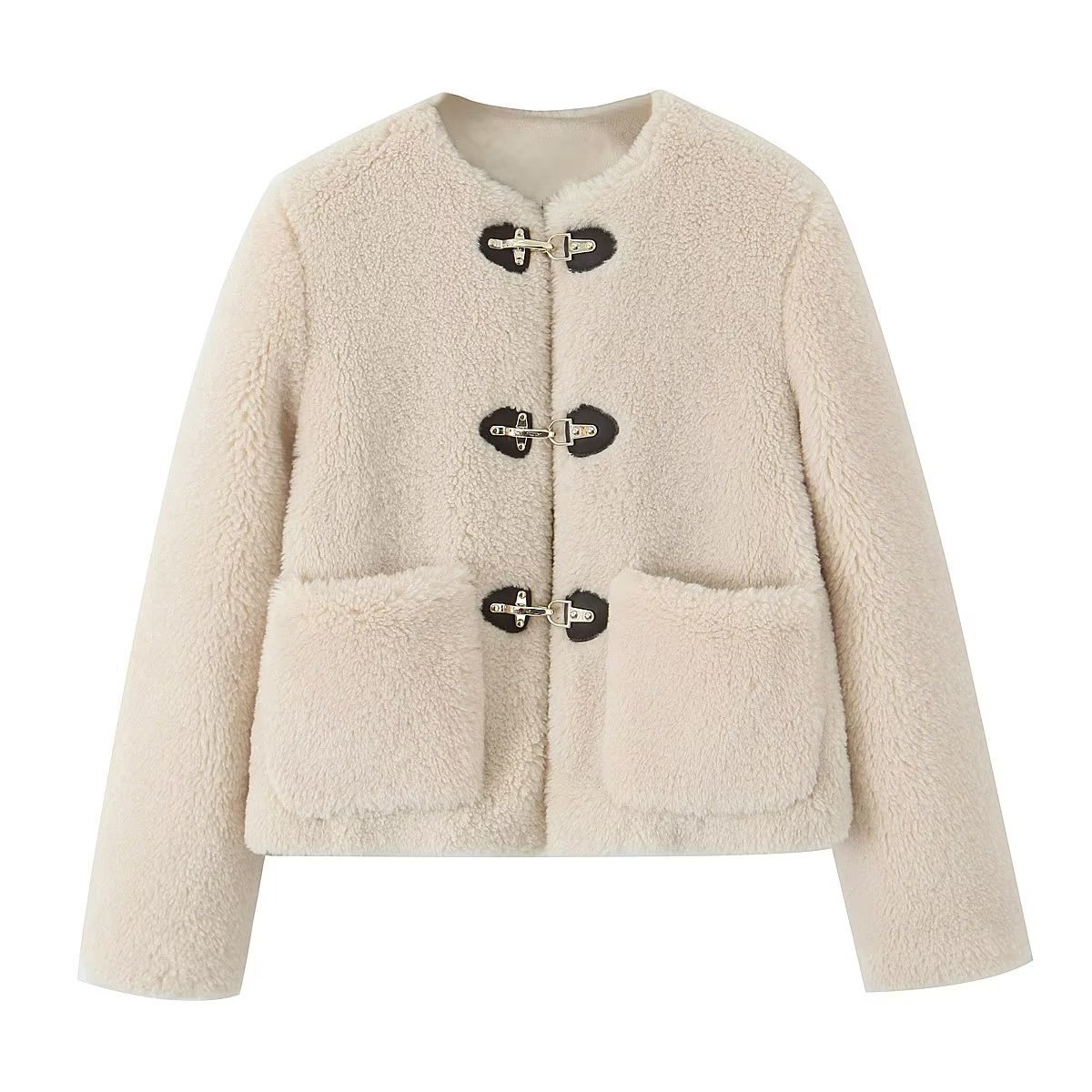 | nameOriginal | 2023 European and American style autumn women's new spring buckle fleece jacket coat 2222 |