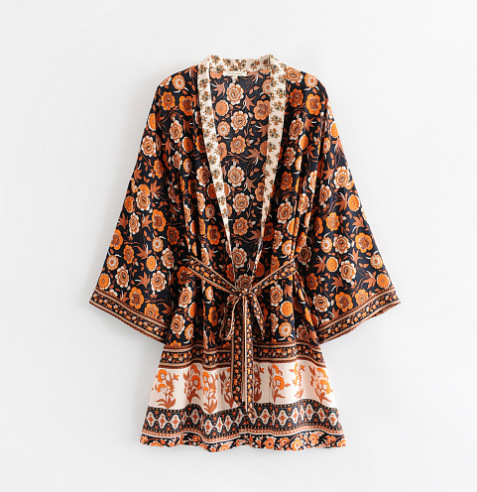 2023 European and American style spring and summer women's new wholesale holiday series Orange color kimono coat 88101