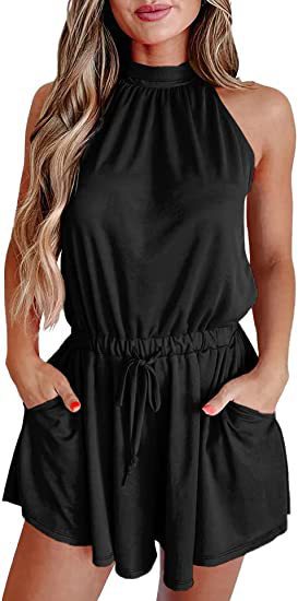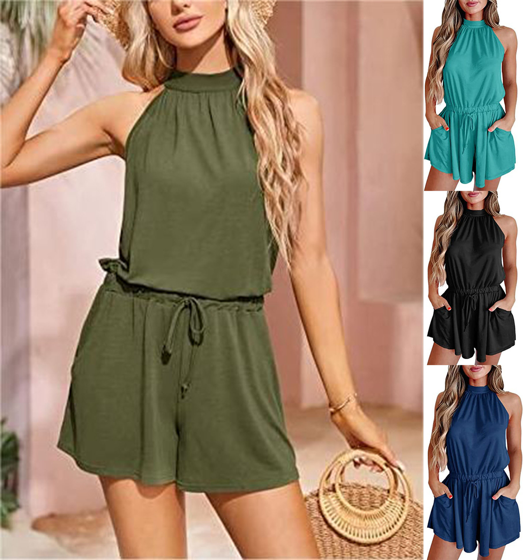 | nameOriginal | 2023 European and American Women's Amazon Elegant Elegant Waist Lace-up Sleeveless Neck Loose Shorts Printed Jumpsuit |