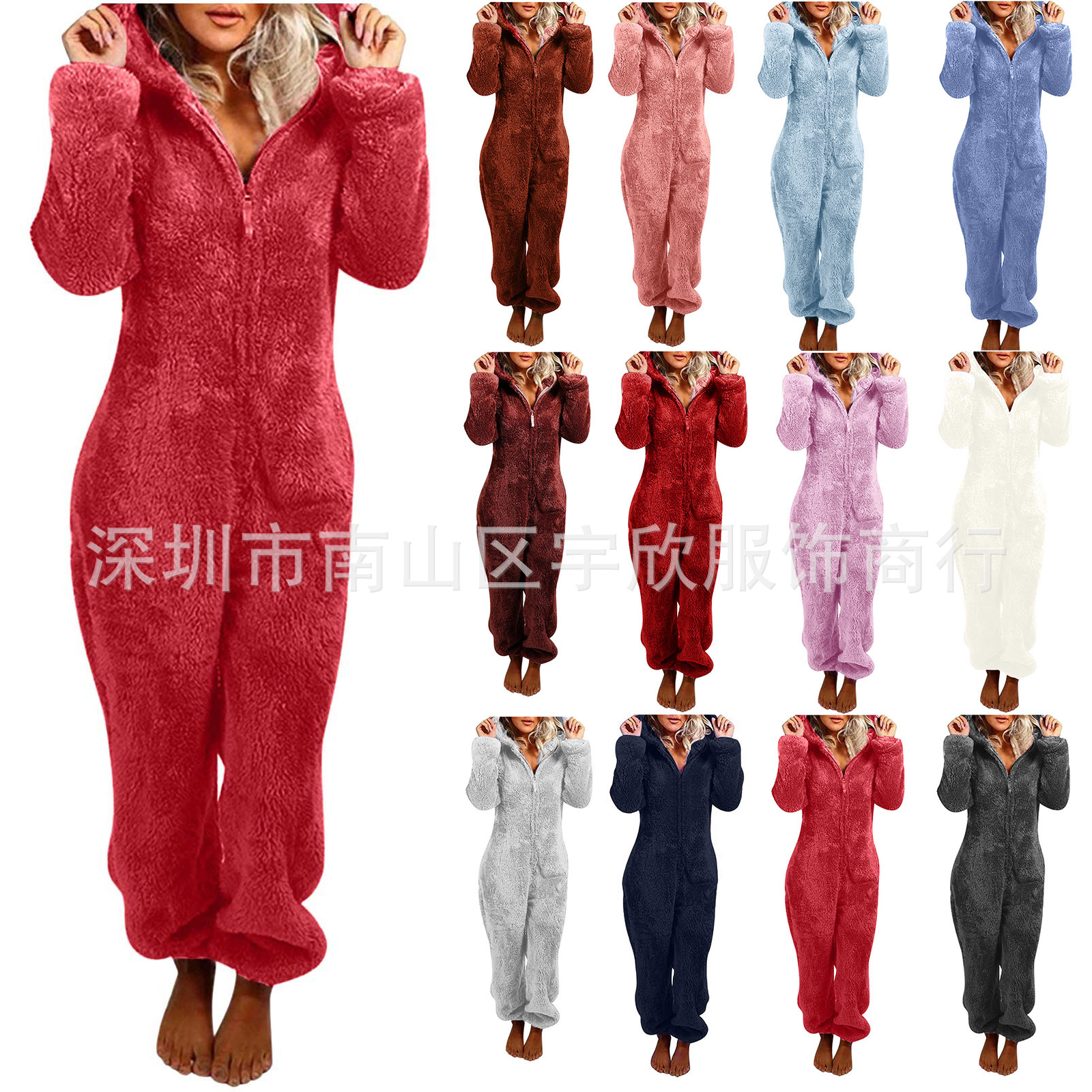 | nameOriginal | 2023 explosions European and American autumn and winter cross-border foreign trade plus velvet padded Mao Mao jumpsuit hooded pajamas women's 22 colors |
