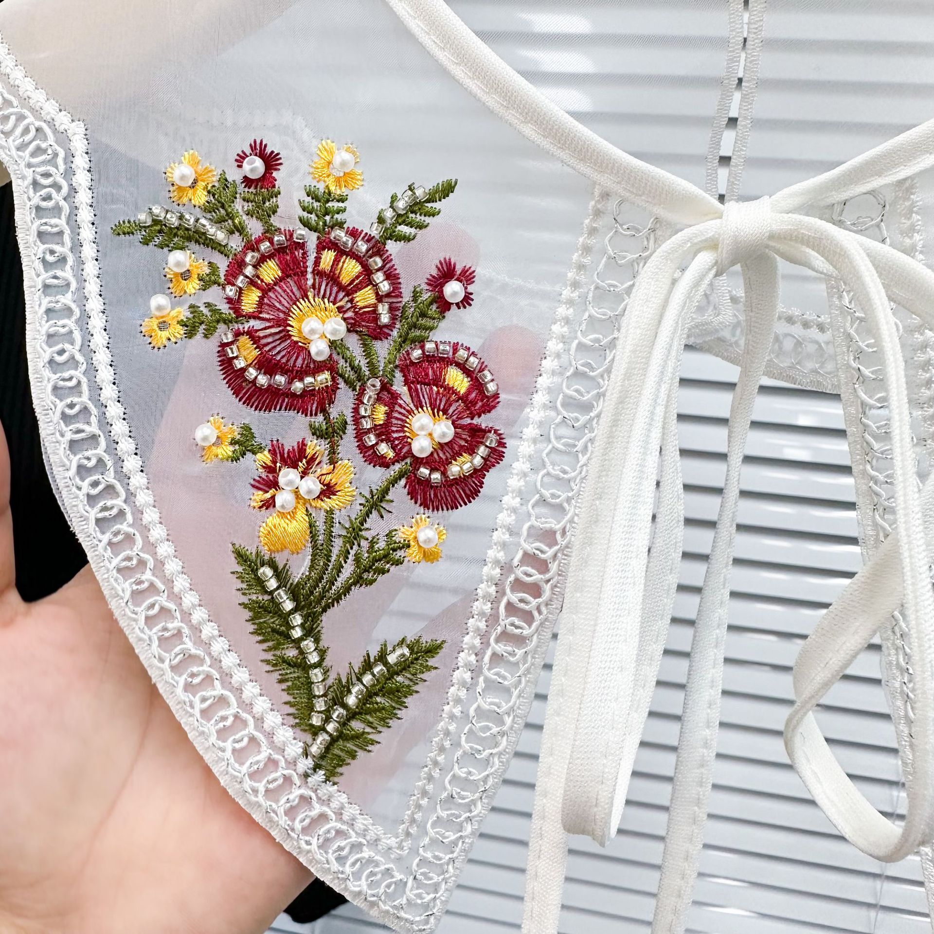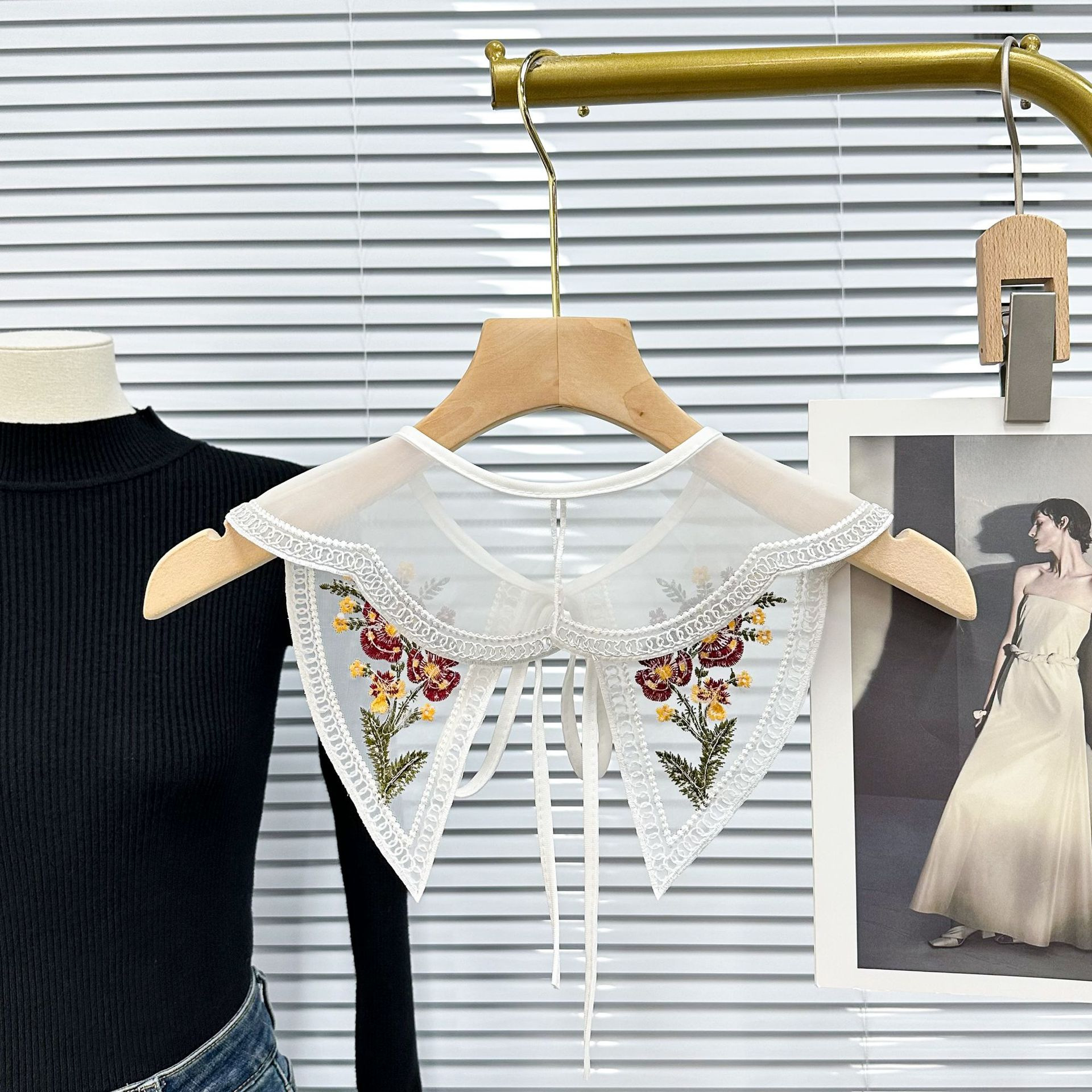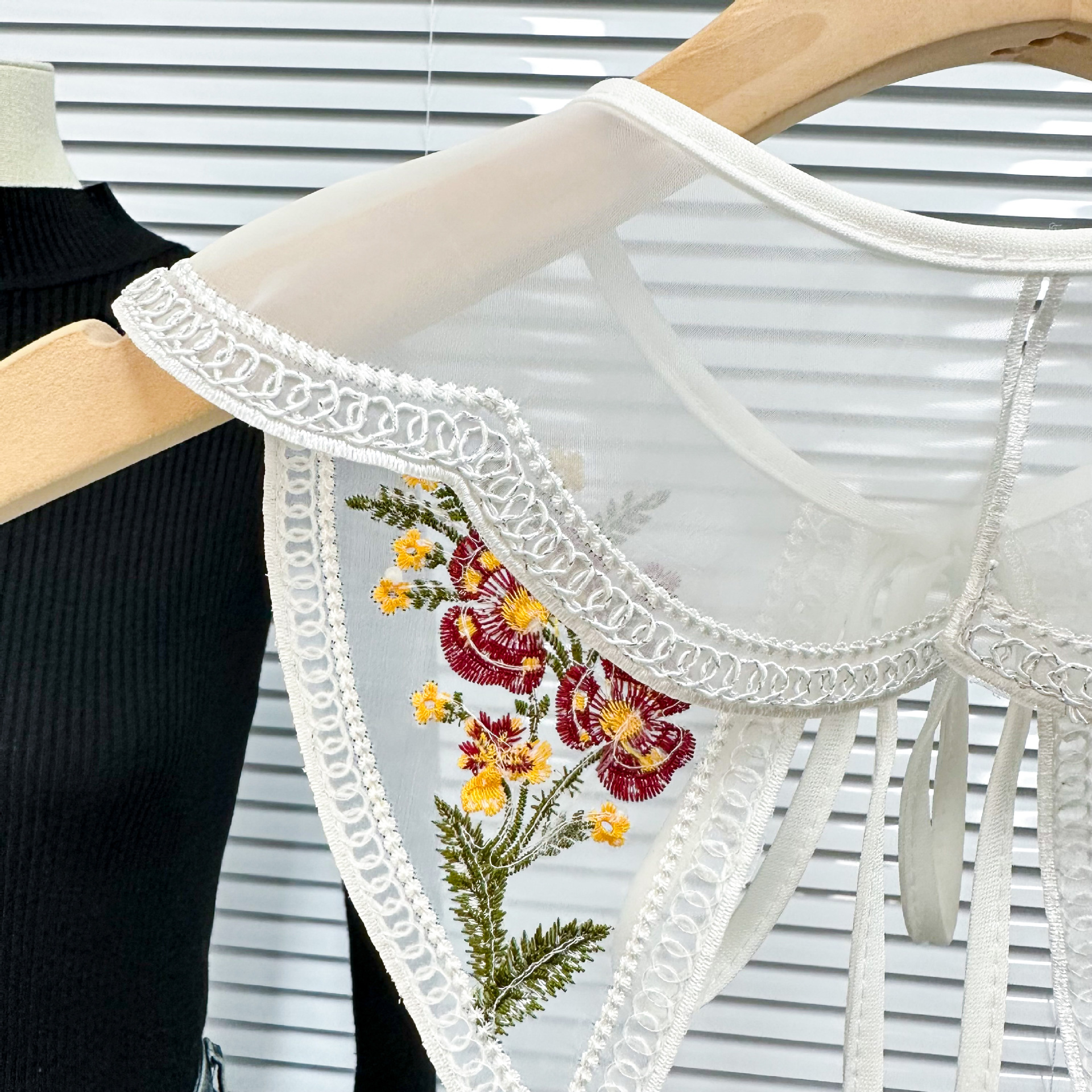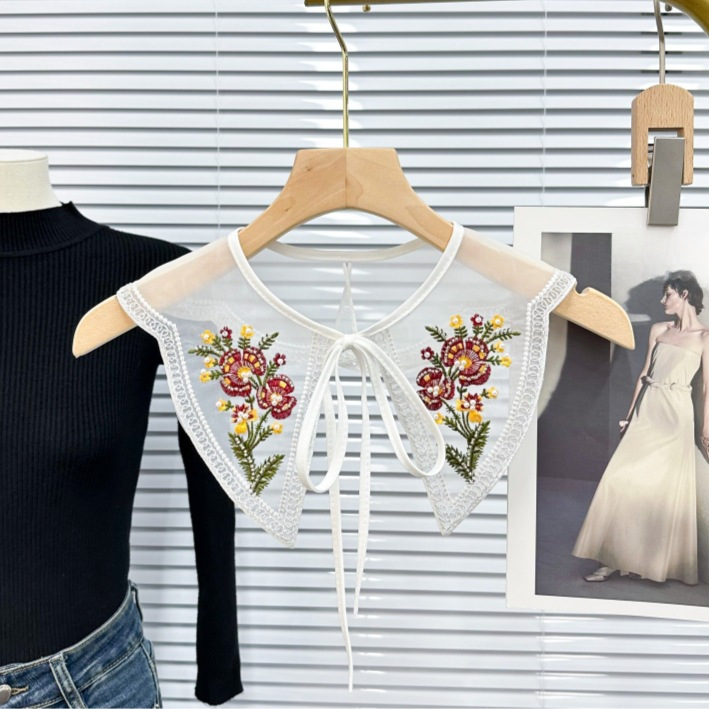 2023 factory direct new European and American style color embroidery flower sweet lace bow shawl false collar