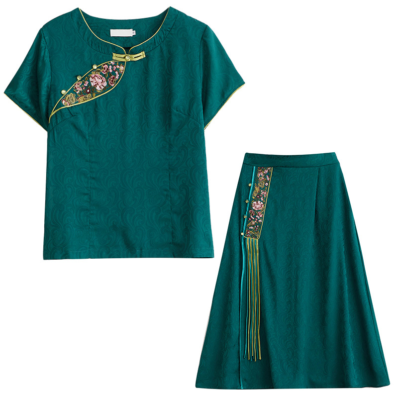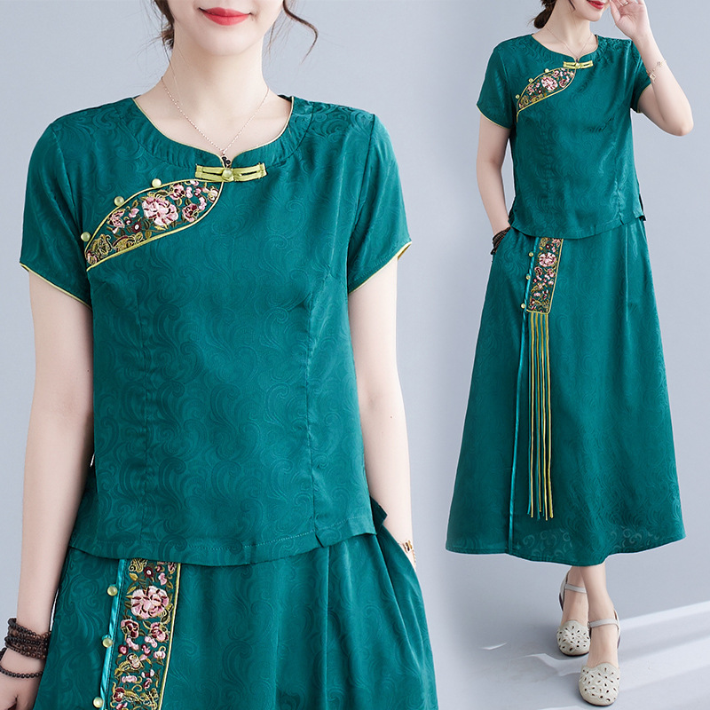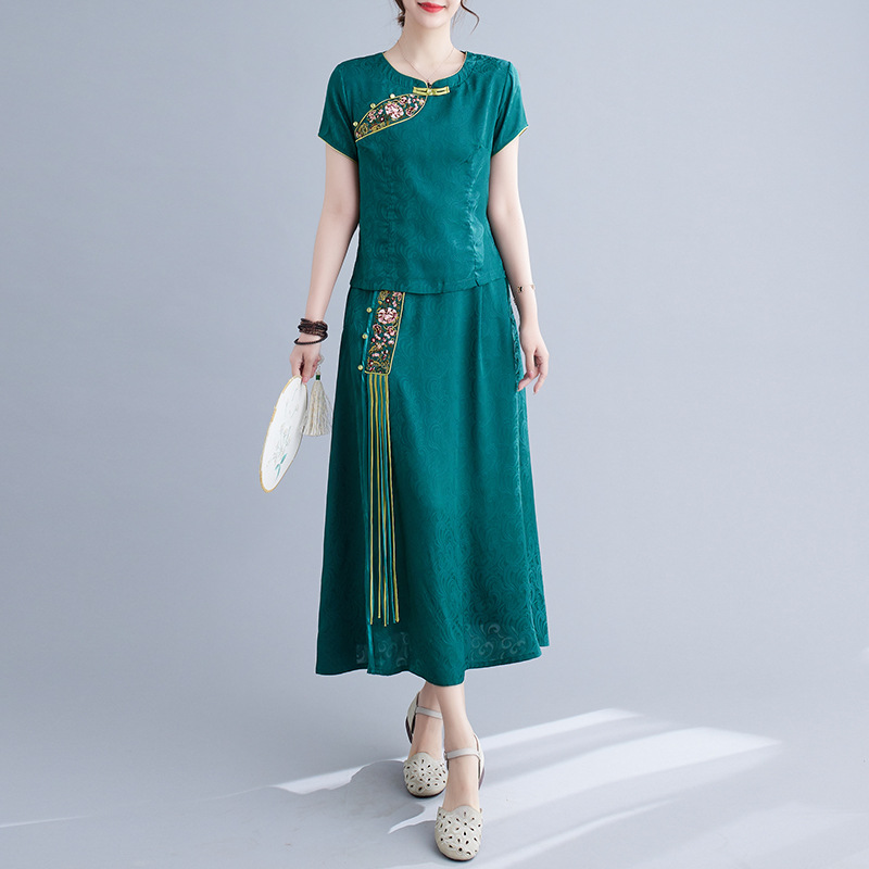 | nameOriginal | 2023 Fashion Improved Cheongsam Dress Women's Summer New Mid-length Jacquard Ethnic Style Two-piece Suit Dress |