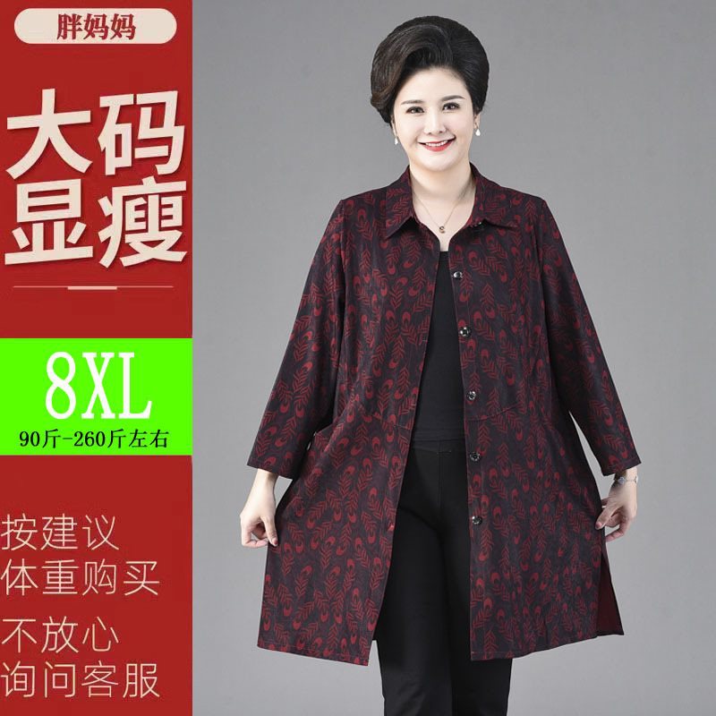 2023 fat mother plus plus size spring and autumn coat foreign style new middle-aged and elderly windbreaker women’s long 200kg