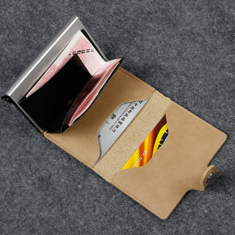 | nameOriginal | 2023 first-layer cowhide card bag automatic pop-up anti-theft card swiping cover anti-degaussing RFID aluminum alloy factory direct sales |