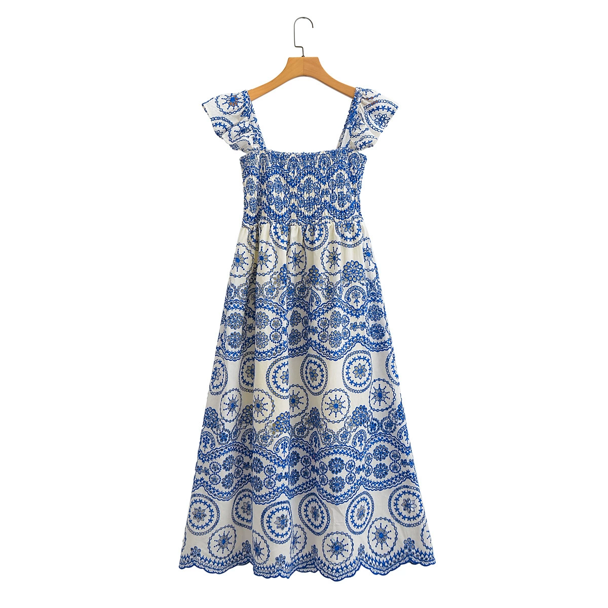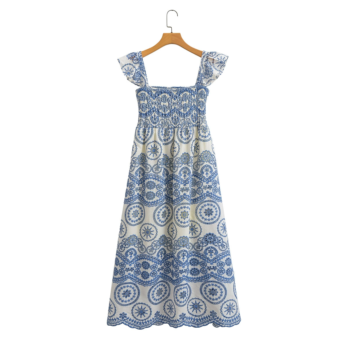 2023 foreign trade women’s new style multi-color embroidered flying sleeve dress 23002