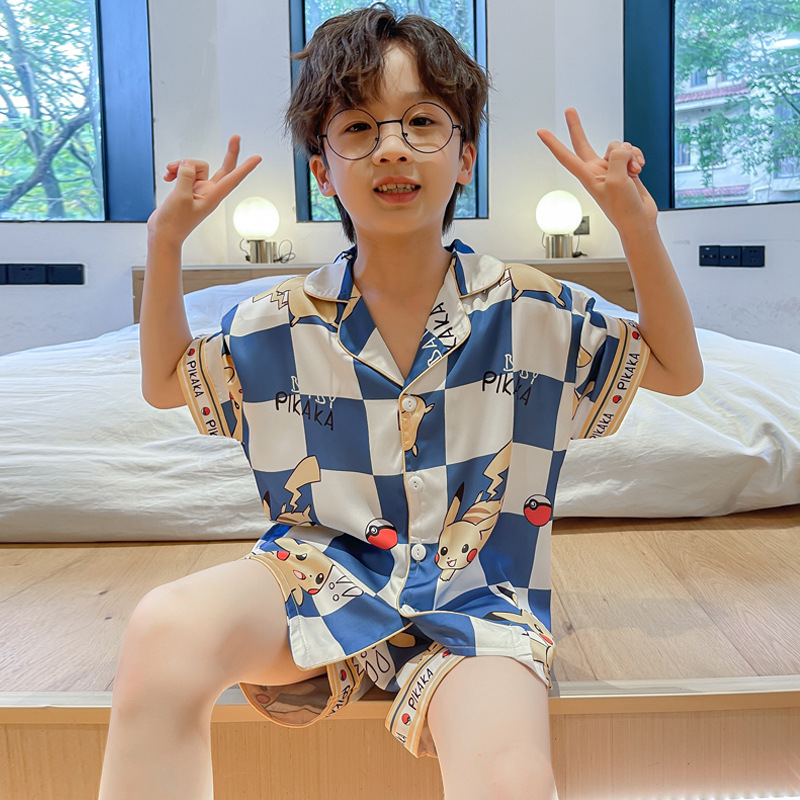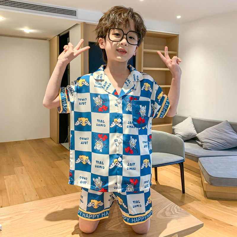 | nameOriginal | 2023 Ice Silk Boy's Pajamas Summer Short-sleeved Shorts Thin Sade Children's Home Clothes Middle and Big Children's Cartoon Suit |