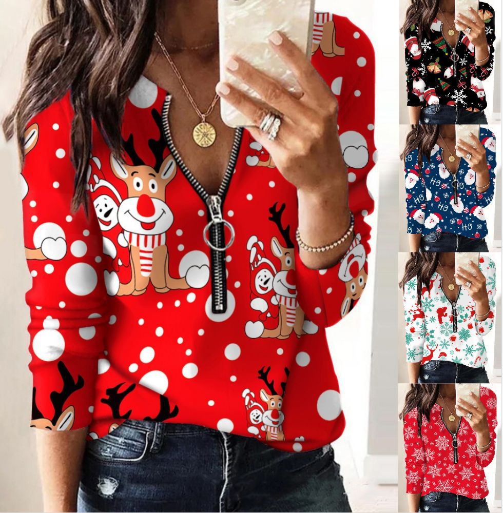 | nameOriginal | 2023 Independent station wish AliExpress popular autumn and winter New Christmas printed V-neck long-sleeved sweater women's top |